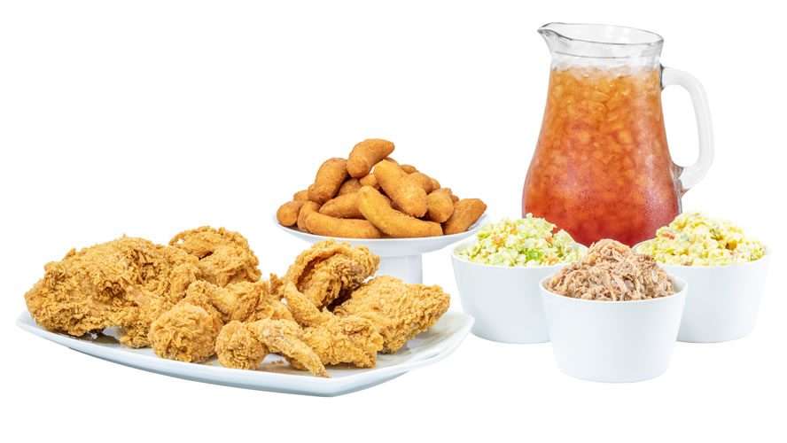 I came back and the food was there. The chicken pieces were so dark looking , the pork was extremely dry, the chicken wings were also dark and dry as if they used old oil , refried chicken or something AND it tasted weird. The fries and rest of food got cold quick because of how cold it was in the building. The sweet tea tasted like water, not sweet at all. We typically get refills on our tea and need to go boxes when we eat here but not today. We did not want to take that food home. Went to throw away our trash and all the trash cans were full to the rim with trash hanging out of them. Just looking around it was nasty, nasty,nasty. Food on the napkin dispensers, food on the tables and chairs. The booths were gross too as my fiancĂŠ tried several different tables before we found one that wasnât dirty. Dust and what looked to be grease on the ceiling/fans.