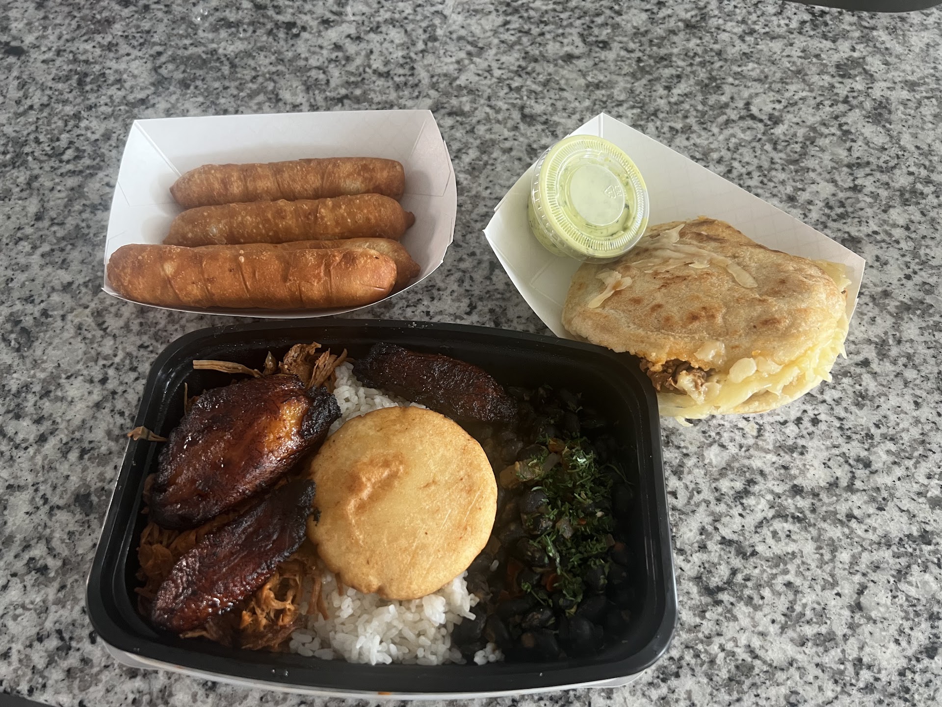 I came for the arepas but ended up loving everything on the menu that I got. The rice bowls, plantains, and arepas are my favorite but you can't go wrong with anything on the menu. The plantains I could eat all day. Rice bowls are a great portion but all the food is great portions for the price tag. Well worth the money. Empenadas are so good, the arepas nicely filled, the sauces you get add even more flavor, and everything is so filling that you will be satisfied.