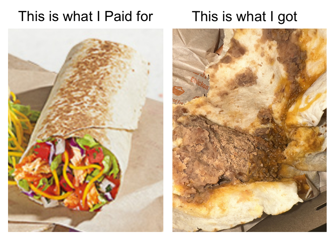 Read moreSo, imagine a Manager who argues with you about what constitutes "extra cheese ". I had requested a soft taco with extra cheese, and what they handed me was actually funny. There were literally about 12-15 of the tiny strands of shredded cheese on it. What you might call a "dusting " - I take it back to the counter & explain that I ordered EXTRA cheese, and the manager comes barging up, with "what's the problem here"? When I explain, he states "extra cheese is exactly 1/8 ounce of cheese, on top of the 1/8 ounce that you normally get. I ask: Do you weigh the cheese for each taco"? "No, of course not, but THIS (goes and gets a little pile of cheese WITH HIS BARE HANDS) and brings said pile to me in the palm of his bare hand, to demonstrate what an 8th of an ounce is. Now I ask you, is this manager doing some great job or what? Saving the restaurant all that cheese, which must be worth millions of dollars! By the way, what he was showing me was easily 4 times what was on the taco, & was only supposed to be half of what I should have had (original amount plus "extra" he was demonstrating.) But the best was still to come. When I pointed out that the taco I had did not have anything like the little pile in his hand... Yep. He did it. He took the cheese that was sticking to his sweaty hand and spread it right across my taco: "See? When you spread it out, it doesn't look like so much! " Apart from making me sick just remembering this interlude, I always wonder what on earth would have been wrong with just giving the horrible, mean spirited (I assure you I was nothing but diplomatic and reasonable) a little extra cheese, perhaps even MORE THAN THE SACRED 1/8 oz. called for by corporate office? Crazy idea, huh? - John Blair, recalling...