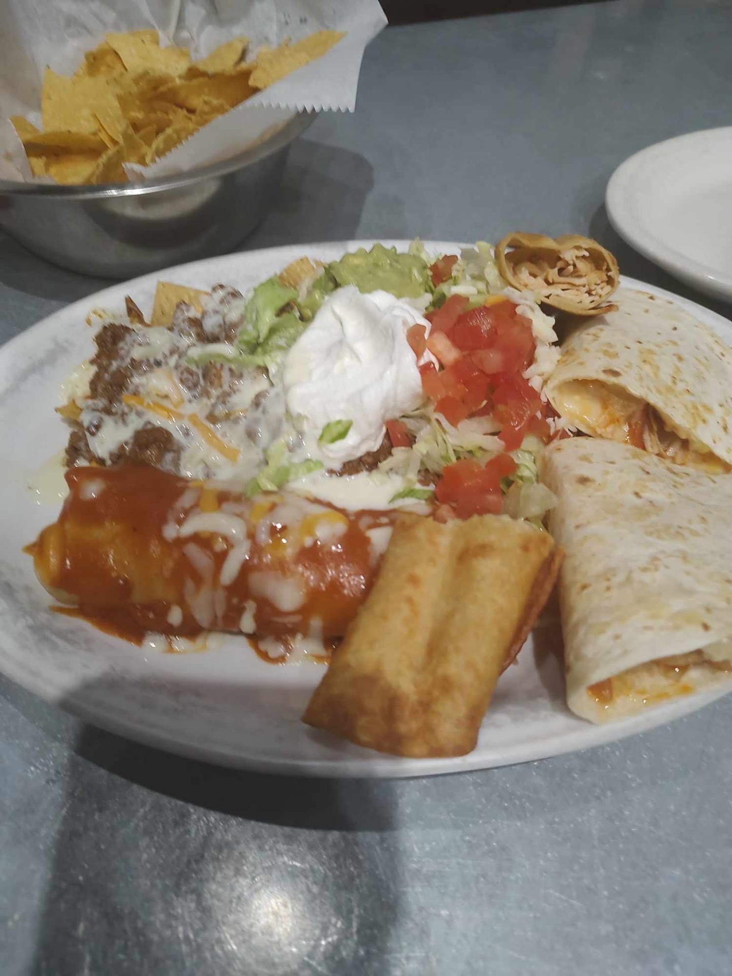 This place was exemplary from the moment we walked in until the moment we left. If I could give this place 10 stars, I would. Truly dislike having passed it by for more than 4 years. My sister kept recommending it and she was right. My husband and I went there to celebrate our 1st yr “dating” anniversary. This was by far the BEST dining experience for us in a long time. Our waiter, the young Mr Kaiden was by far the best server we’ve encountered in over 3 years…Our drinks, appetizers and entrees were promptly bought to us —- NO extensive waiting, NO cold food, NO watered down margaritas here!! When I say “YOU HAVE TO TRY THIS PLACE” you definitely need to try this place…The sampler platter was actually sufficient enough for the both of us. We did purchase a taco/enchilada combo dinner and chimichanga meal.