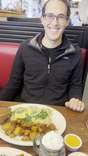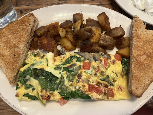 Ā Ā Ā Read moreI loved this place. I went for my birthday with my mom. I ordered the ultimate veggie omelette without broccoli and with mozzarella cheese, it also comes with a two sides, home fries and your choice of toast. I also got an order of the stuffed French toast with ricotta and chocolate chips; so cannoli. The atmosphere was quiet, nice, and clean, which is very important. The woman that sat us down was very kind and polite, she took our orders very professionally and was patient with us, because we needed extra time to decide what we wanted. The food came out very quickly. It was the best omelette I have had from a restaurant ever! It had cute cut peices of mozzarella, which was good because it wasnāt too much. Like in the past other places added too much. The home fries were some of the best Iāve had too, lots of good flavor. The Stuffed French Toast was absolutely amazing, the presentation was everything! We will definitely come back...