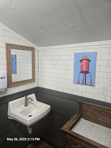 The restroom was in a separate building smelled clean and kept warm with a heater.