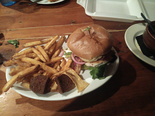 Second mistake. What I got was a bun, meat, pepper jackcheese and bacon. No aioli. I had to ask AGAIN for it. No tomatoes or lettuce..that would cost more.. $.50 each!..no thank you..and was not listed as extra add on for more cost on the menu.