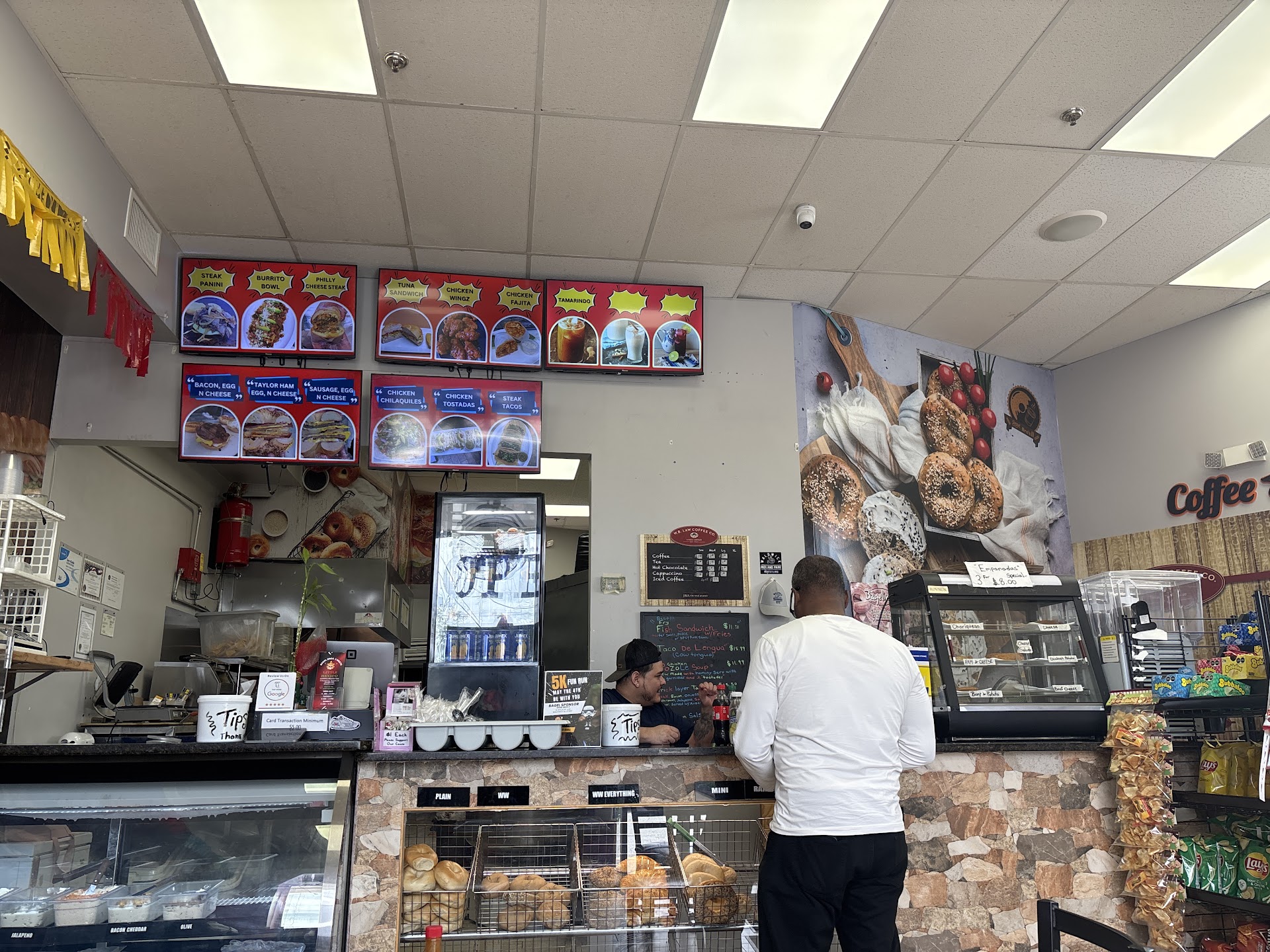 Read moreThis is the worst bagel store! I tried not to write negative review, but what they did is not very nice. Two stories to share: 1. when I tried to buy some ham there, the employee whispered each other something, then one guy grabbed some ham from a container and handed it me. When I get home, I found it is bad ham. 2. Last week, July 23, I went to the store to grab some quick lunch, I bought a bagel with egg and cheese. After I paid, I wanted to add a plain bagel. So they swipe my credit card again. Then the cashier asked me one or two bagels, I told her one. She was about to hand over the receipt to me, then she took it back and said since you signed previously, you don't need to sign again. I suspected she charged me two bagels but only give me one. I did not confront her because one bagel. I am checking my credit card transaction, she did charge me $1.98, which means she knew she charged two, but only gave me one bagel! I don't care that they take me extra $1. But it is just not right. This store is insane! be careful when you buy stuff there. I will never ever go...