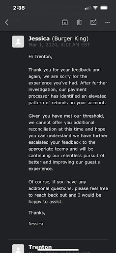 I strongly urge Burger King to address these issues. If this level of food preparation continues, it will damage the brand’s reputation and drive away loyal customers. At the very least, I believe I am entitled to a refund or a replacement for this order. More importantly, I hope the restaurant takes steps to ensure meals are freshly prepared, properly cooked, and presented in a way that reflects care and respect for customers.