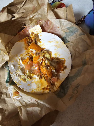 Read moreStopped by this taco bell tonight at around 9 pm. My wife ordered a $5 cravings box, she upgraded the taco to a dorritos locos taco. Right out of the gate things were going sideways when they didn't give her the cinnamon twists but that's no big deal. We brush it off, she goes In gets the twists and we leave again.she opens the dorritos locos taco... and right away it hits me.... Dog food!!! dog food thing aside the taco was not even eatable it was all busted and soggy and stuck to the cardboard sleeve. Totally disgusted already, my wife hoping to satiate her hunger goes for the chalupa.. she takes one bite and it seems to be going okay, but on the second bite there it was a long dark hair Buried it the taco...And that is when it occurred to us that these things were probably no accident and that these young kids are in there messing with people's food and thinking it's fun. I am pretty sure that the taco was made with dog food there is just no possible it only I I uploaded a picture... I'm hanging on to the taco and calling my attorney in the morning... this is nothing short of aggregious. I am actually going to file a police report, I wonder how many others were given dog food...