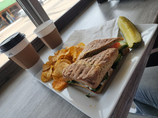 Read moreI got a breakfast sandwich w/ bacon, egg, and pepperjack on an everything bagel for my fiancé— he said it was good and it looked quite substantial. Breakfast served all day, which is great because he always wants a late breakfast for lunch and I always want actual lunch lol. I got a veggie sandwich on a croissant with provolone, pesto mayo, sprouts, cucumber, tomato, and onion. Mine was delicious! The ingredients were super fresh. One of the best sandwiches I’ve had in a long time and I enjoyed getting to build my own with what I was in the mood for; it’s hard to find good veggie sandwiches! The service was also quick, friendly, and accurate. Loved the artwork too. Will be back next time I’m...