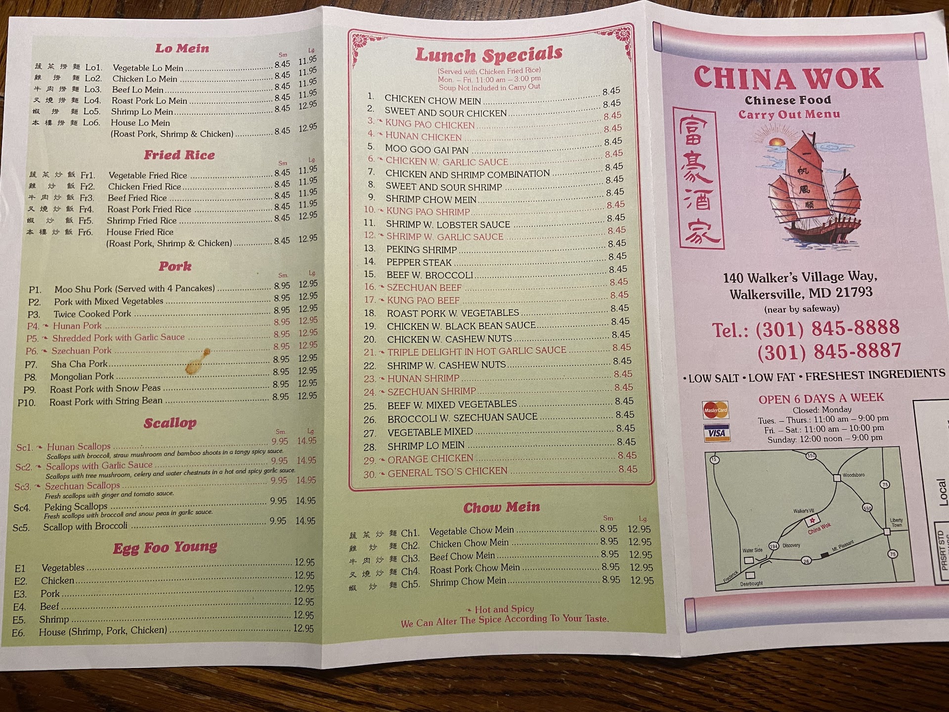 It's been many years I've been to China Wok. Unless things have drastically changed, I was shocked at some of the negative comments. I used to go for lunch a lot when I worked in Frederick. I was NEVER disappointed nor did I ever get a poorly tasting dish. Sometimes on my was home I would pick up a carry out order for my wife and kids. My wife is very picky about restaurant food, but she truly enjoyed their great tasty food. I felt that their service was prompt even when they were very busy. The owners were always very congenial would do anything that I would ask them to do. I couldnt ask for anything better. Again, it was hard to believe the negative view. Next. Time I'm in Walkersville, I will get a order and leave an honest and...
