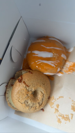 Ā Ā Ā Read moreWhile the staff was kind and helpful, i am not sure why my donuts had this presentation. The icing was literally melting on the orange one. The Bavarian cream donut was falling apart. The jam fell out from the donut on the box literally fell out of the donut when i picked it up, super disappointed.