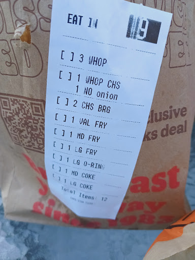 Read moreI understand everything costs more now. And I have no problem paying for quality. But if I'm paying 10$ for a burger I expect to at least be made correctly. They screwed my order up twice while having 2 different people telling them what does and doesn't go on it. I stop here because it is supposed to be convenient and I leave hungry because I can't get my overpriced food made correctly. But this isn't a problem with this place specifically. It is a burger king problem. I honestly cannot remember the last time I had a good experience at burger King. Go here if you want to wait forever to get something incorrect and not end up getting to eat. Would rate...