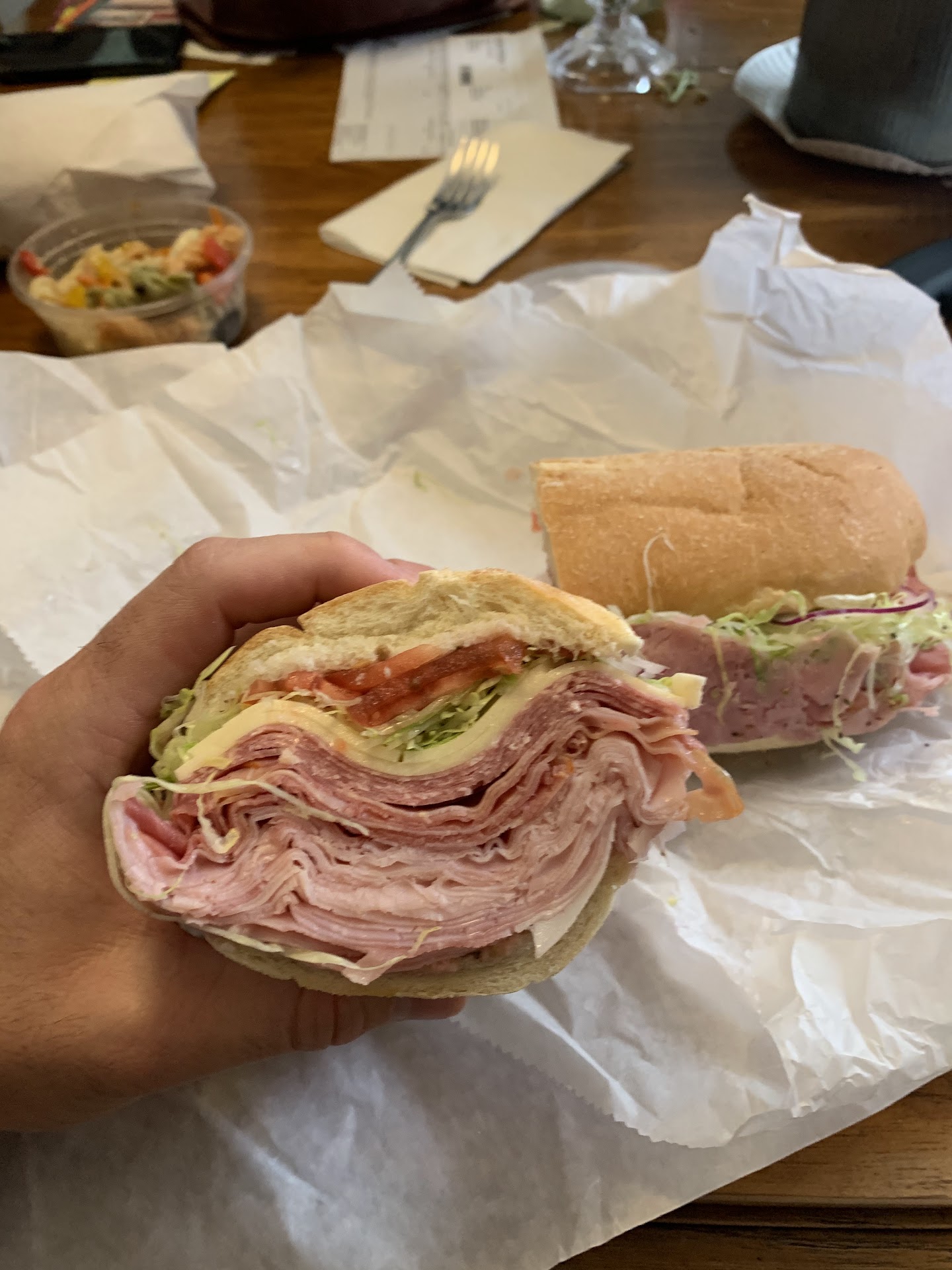 Absolutely horrible I just left there. Ran in to get a chicken salad sandwich 🥪 for a friend for lunch I asked the tall kid behind the counter what type of bread they had. He points to behind the register an says it’s over there 👉 and he had some bread behind him So I the customer has to figure it out ?? 🤷♀️🤷♀️. So then I pick a bread 🍞 an asked what does he put on the sandwich so again what ever I want. Not a list suggestions. So he then proceeded to make the sandwich not washing hands Slapped literally a scoop of chicken salad on the bread. One slice of tomato a small sliver of lettuce an a thin slice of cheese Handed it over an said here So I’m like ok So he is like I guess I have to ring you up. So go to the register!! So rang me up. I grabbed chips. I got a eye roll Then I asked for a bag an napkins. An a hugh huff an puff comes out. Who is this kid. An why my god why is he in customer service Is your life that bad ??? Avoid the kid an the place !!! Better delis out there and better food and services This is....