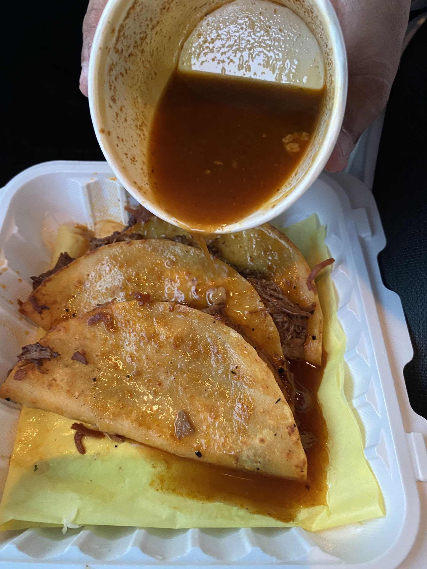 Went back Saturday for a second pass to see how we would fair without competing with hundreds of other customers. We ordered a couple of mini-tacos - one steak, one chicken. These tasted much better although the chicken had a piece of bone. We were told that most of the meats are processed off premises through a third party and arrive for cooking.