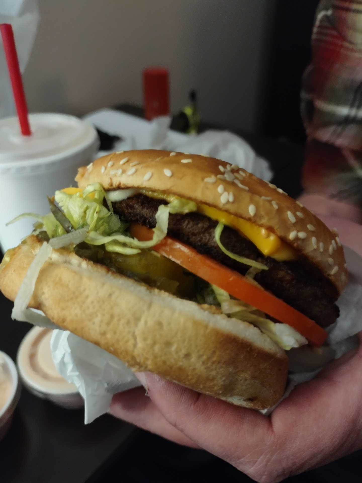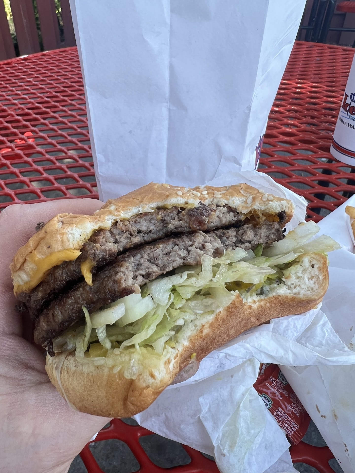 Read moreGlad we came here, but everything is cooked fresh, so expect to wait. Get the double cheeseburger, put it in a combo, get it with the shake. It is cheaper that way. The burgers do come with pickles, relish, tomato, lettuce, onion, and a sesame seed bun. Get a container of fry sauce & ketchup packets on the side. The onion rings were perfectly golden & extra crispy with what looked like panko bread crumbs, loved them! The meat is thin & crispy, hence why I said you should get the double for more meat to bread ratio. Chocolate malt was so good, the shakes are worth it. The strawberries come from local Klicker farms, huckleberry is a bit more, they have so many flavors of shakes. The fries are lightly battered, the portion is good sized. My hubby & each got a burger & couldnt finish the onion rings, they were very filling. The Gersch burger was served on two pieces of toasted white bread, but the same as a cheeseburger. It was a bit more money than fast food , but way better. They play oldies on the loudspeaker. Takes me back to our drive in in Kent , WA. This is a cool place to visit. Lots of people were lining up, that tells you this place is...
