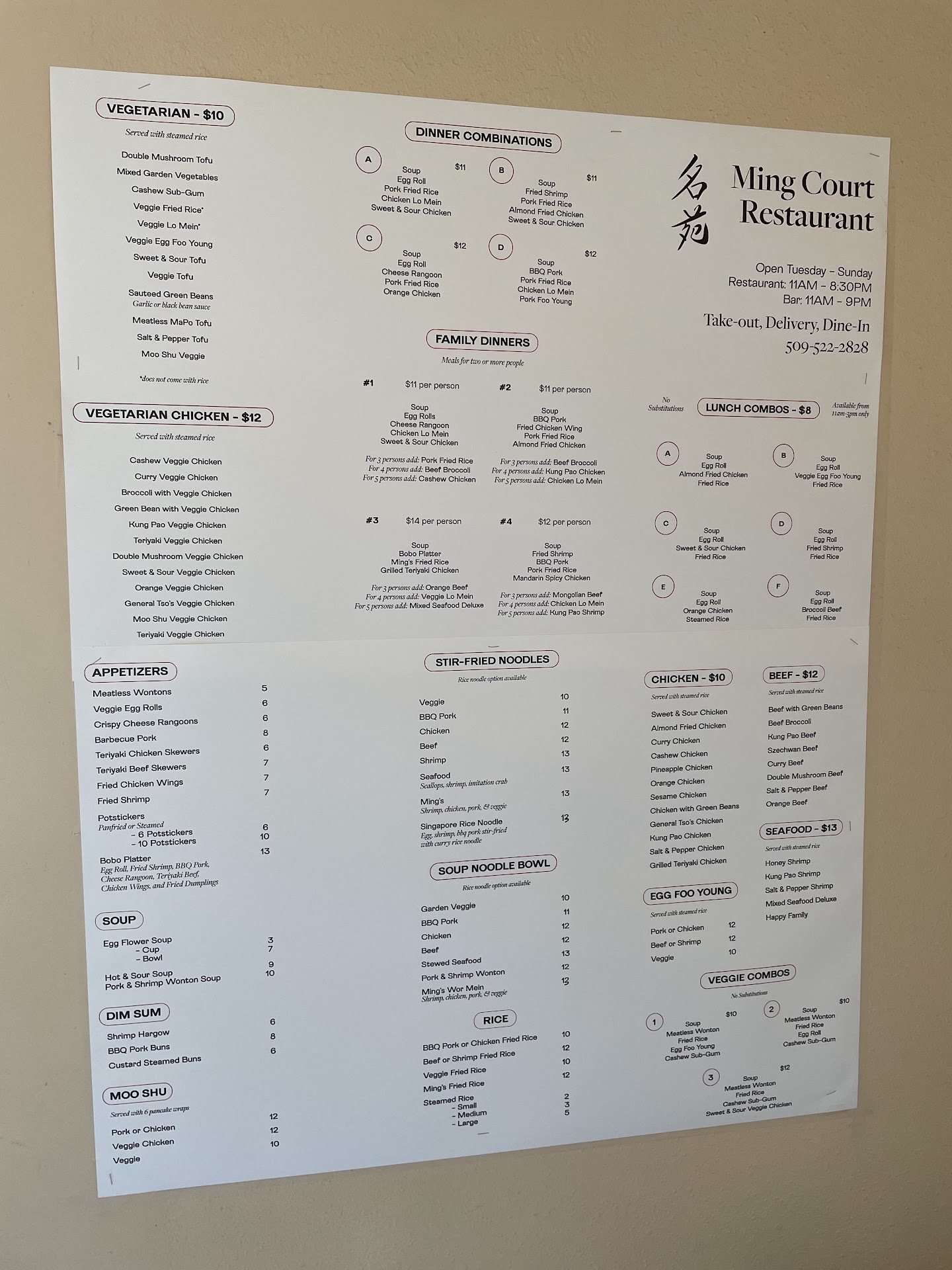 Read moreWe used Ming Court for catering (take out for large groups) and they lost our order (two dishes, added up to $100+) . Then they denied that they had lost it even though we had called them 2 weeks before and then called again a few days before to confirm. The guy sat us down and made us wait 30-45 minutes until the food was done and then did not offer a discount. Being a professional event that we used them for, we require a professional restaurant to cater, so we will not be using them again. The food is not bad, but the staff is not easy to work with, especially if you are ordering for catering/takeout for...