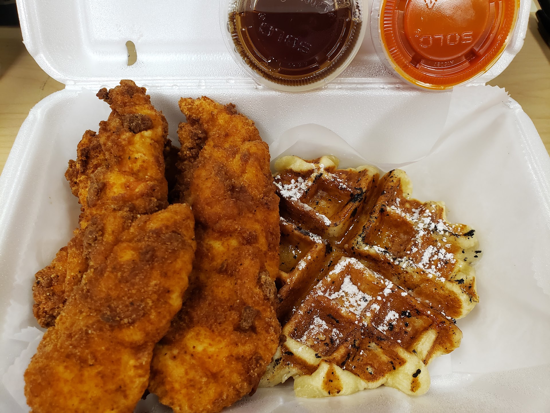 When I saw that this place had nothing but 5 star reviews, I couldn't believe it. My wife and I decided to try it anyways and weren't disappointed! The chicken is so perfectly cooked - juicy and crunchy. She got chicken and waffles (and couldn't stop talking about how good the waffle was) and I got boneless wings (which were actually giant chicken tenders) with sweet chili thai sauce. Wow! And the fries were still crunchy and delicious after the 10 minute drive home. 10/10 would...