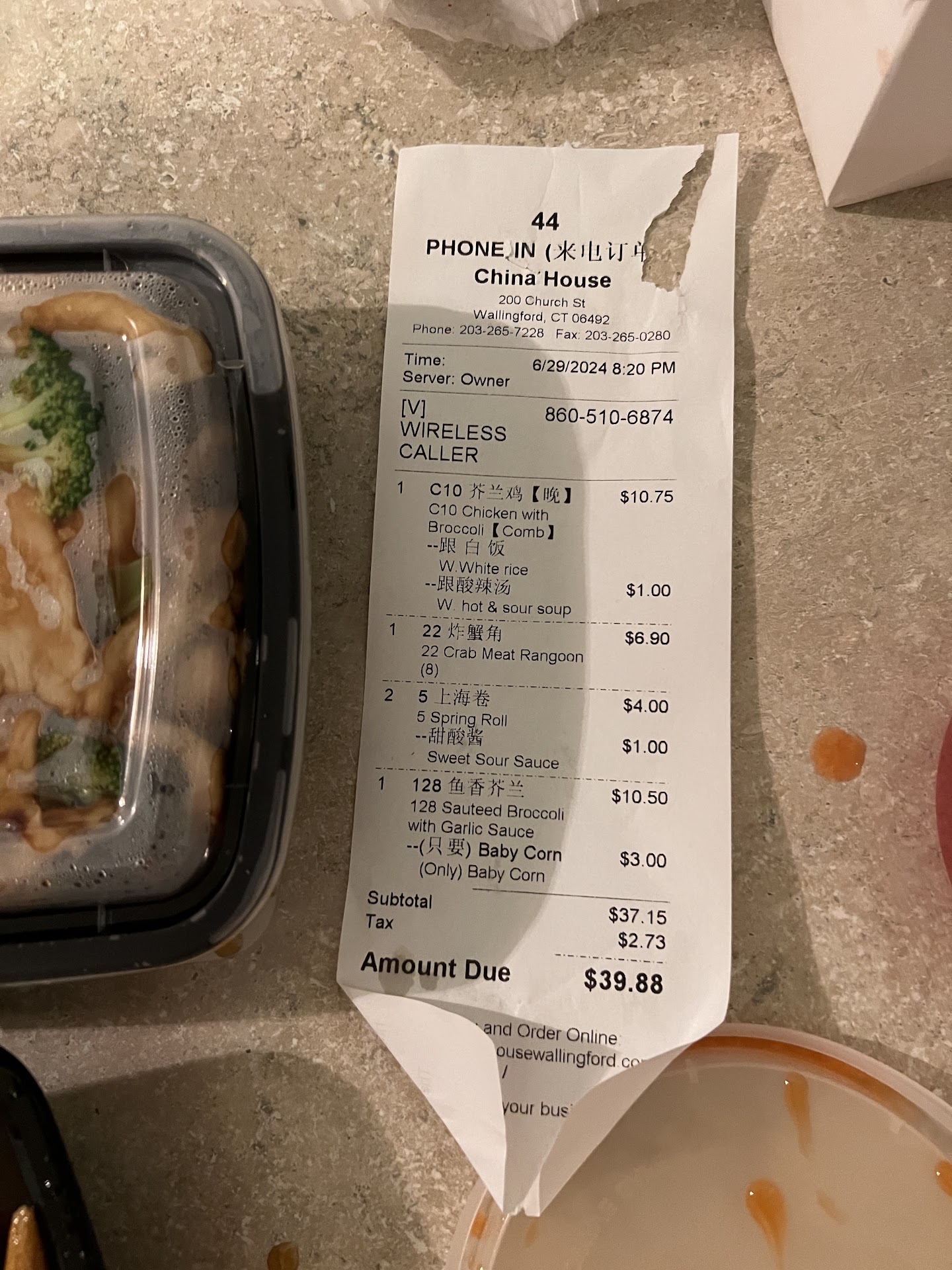 Read moreThe absolute WORSE meal in the greater Meriden area. Please trust me, we order on line often and this was the first and LAST time. The chicken and vegetable dinner was an absolute joke. The meal part was literally half onion. Whatever person cooked this took an onion, cut it in half and that was half the dinner. I get more chicken from McDonald’s in a kids meal than I got from this horrible restaurant. The other meals were meager in amount (vegetable egg foo young) which was almost all oil.