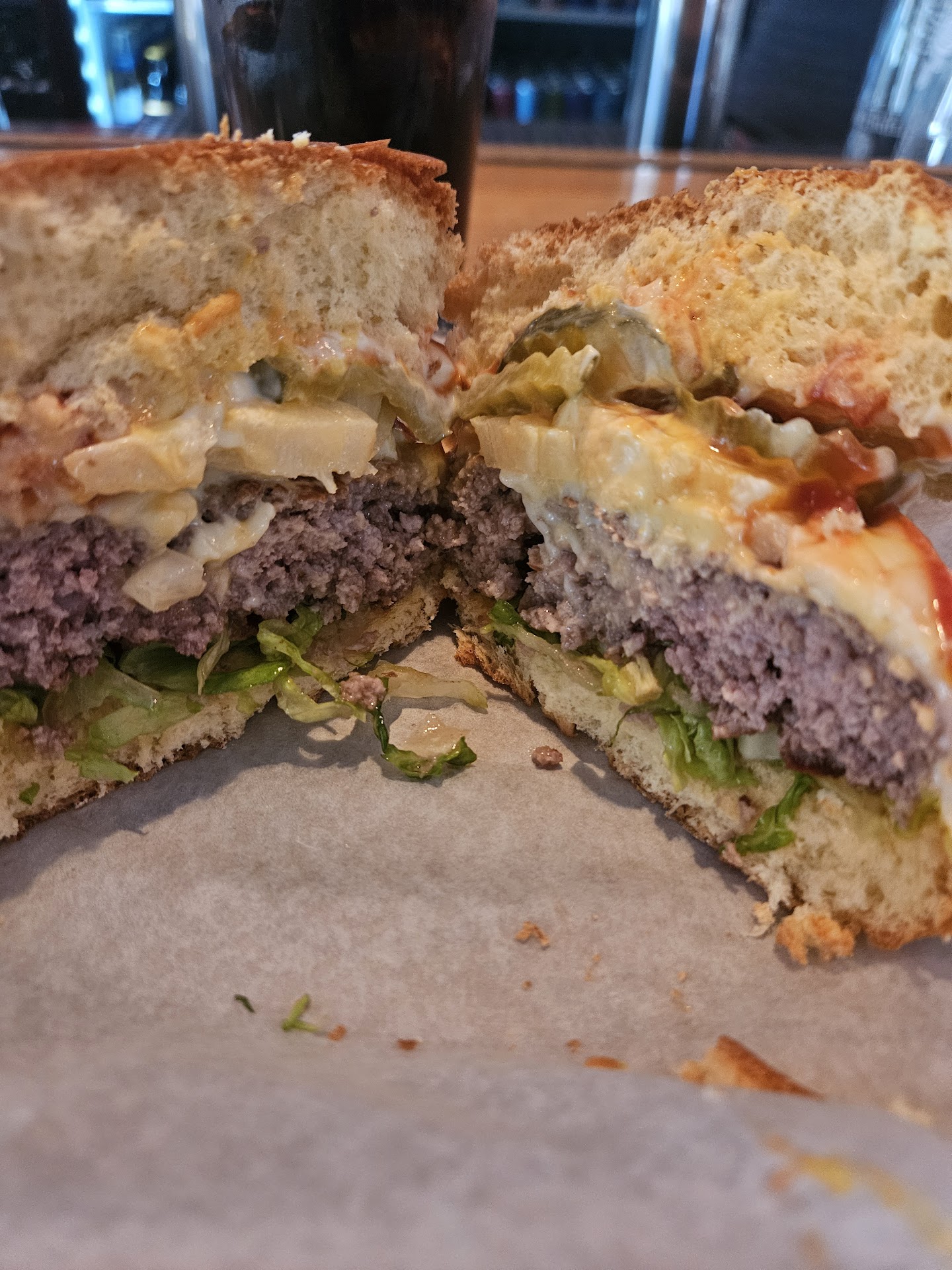 Read moreI think there are two questions about this place. 1, how is the atmosphere? 2, What is a steamed cheeseburger. The atmosphere is pretty fun. Noise levels are great for conversation unless the jukebox is playing. Good selection of beers and good food. I had the potato skins and a steamed cheeseburger. The steamed cheeseburger was better than I figured. The steaming process seems to foam up the cheese and create a viscous gooey cheese which coats the tongue. Some may complain it makes salt flavors more pronounced.I think if you can stand a bit of a salty cheese on the most tender meat you will ever try, give this...