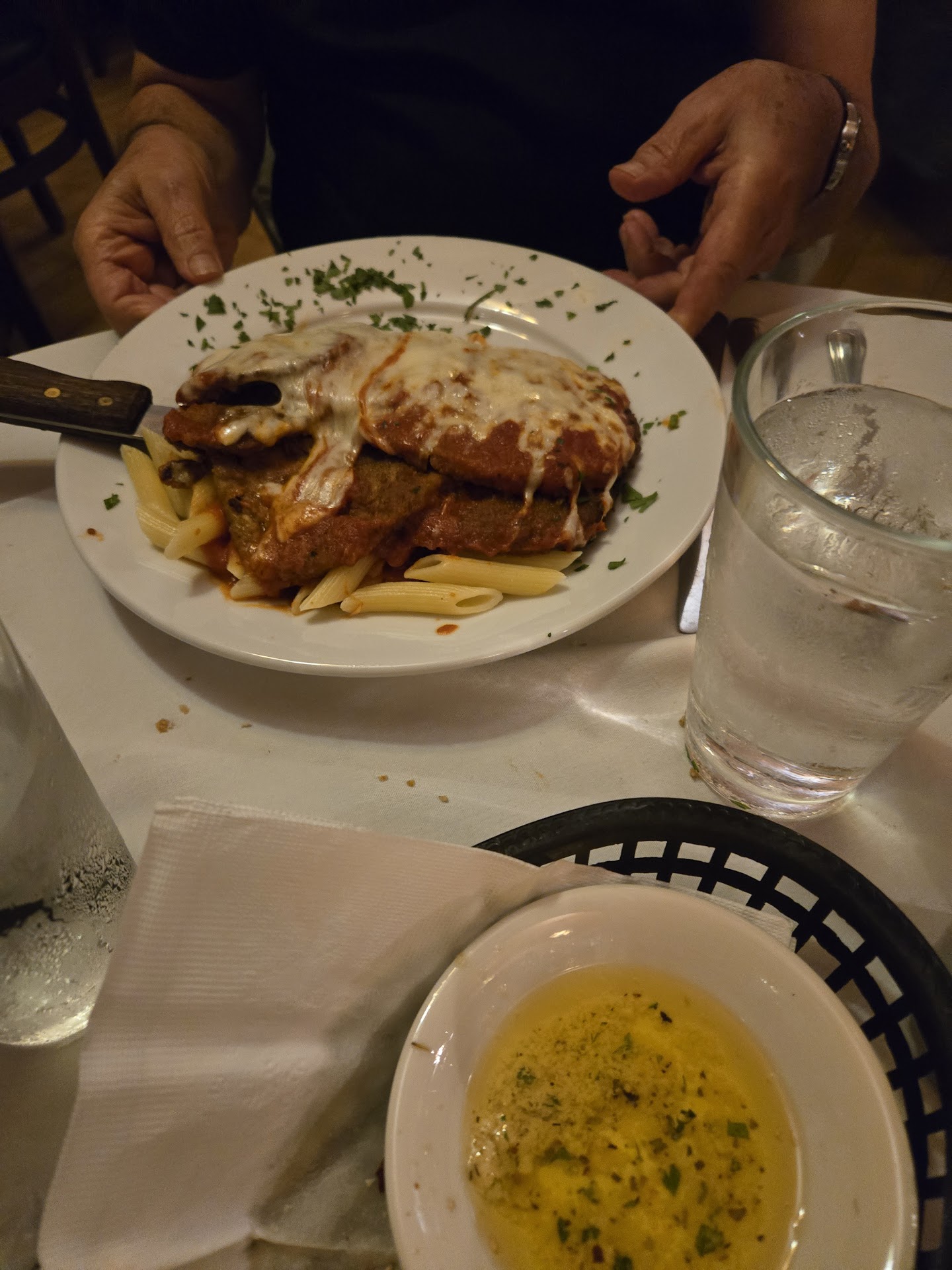 Beyond that, my dining partner didn't receive the beverage he ordered, the bread they served was closer to a baked hot dog bun than true Italian bread, and the bathroom was in the kind of condition I'd expect from a pub.
