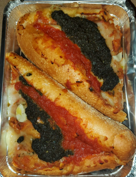 The chicken parm grinder wasn't a cutlet but rather a cutlet that was chopped into chunks like cat food and put on a roll. The roll and the red sauce were good but the chicken itself tasted old and previously frozen. Also if it was a cutlet at one point why chop it up and not like leave it as a whole sandwich sized cutlet? Neither my wife nor I, hungry as we were, were prepared to choke it down.
