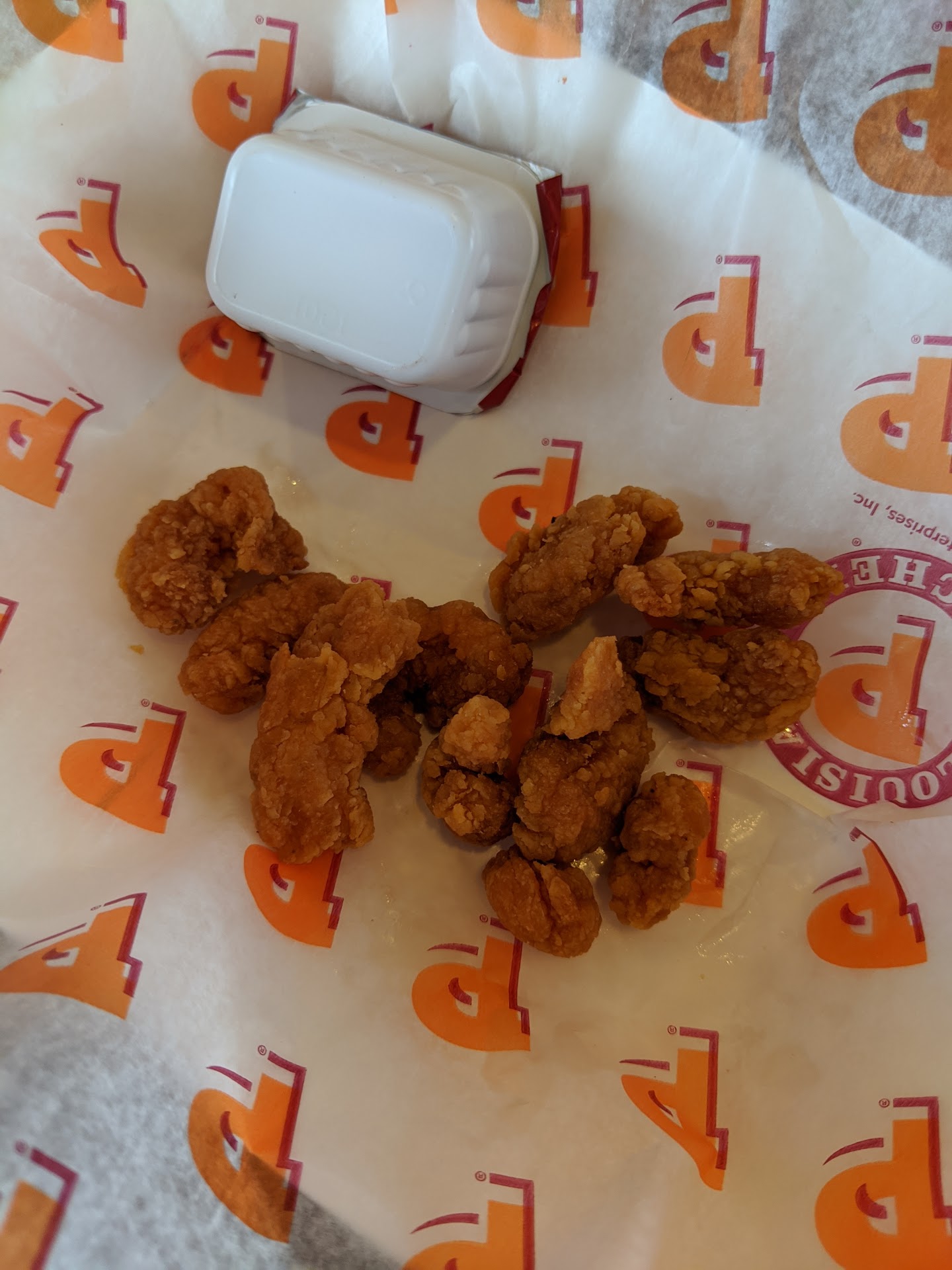 Read moreUnsanitary it the only word that comes to describe what I witnessed. The manner and 3 other employees were smoking on the side of the building near the dumpster when I parked. The drive thru was slightly full so I walked inside where 1 employee was on the head set talking orders and packaging food alone. She did not even acknowledge me in the dining room nor the two customers who walked in after me. I stood in line for about 10 mins while one of the employees who came in from his cigarette break walked right to the beeping machine and took out the over cooked chicken.... did not wash hands. The woman behind me asked if I had been helped because she was a delivery driver in a hurry and I told her no I had not been helped. When the manager finished his cigarette he walked up front without washing his hands and asked if he could help me but I directed him to the lady who needed to pick up a delivery. Unfortunately the order hadn't been made and I decided to leave due to the mess of food splattered behind the counter and lack of service from employees everyone should not have been outside at the same time and no one wanted their hands! I will never visit this...