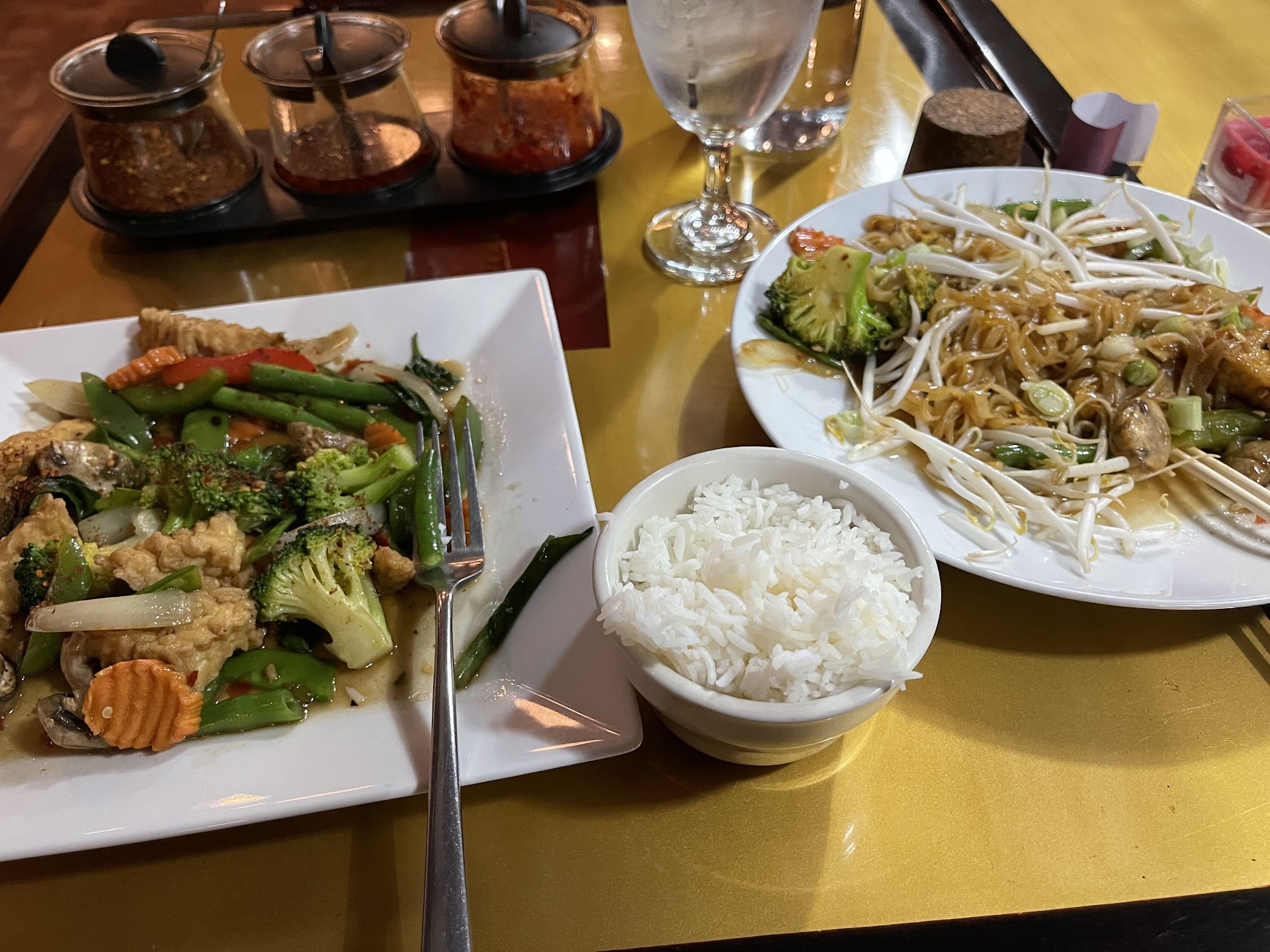 Darn the owners changed and so did the food. My pad Thai had broken noodles so that when you picked it up, they were 2-3 inches. It was gelatinous, maybe it was because the noodles were overcooked. I didn’t eat it. They offered to make it again but I declined. They kept it on the bill but it was fine since I wasn’t going back. The tofu basil was better but I probably will not go again. The service on the otherhand is much better than the previous owners. I haven’t been in this part of town for a year and didn’t realize it had new owners.