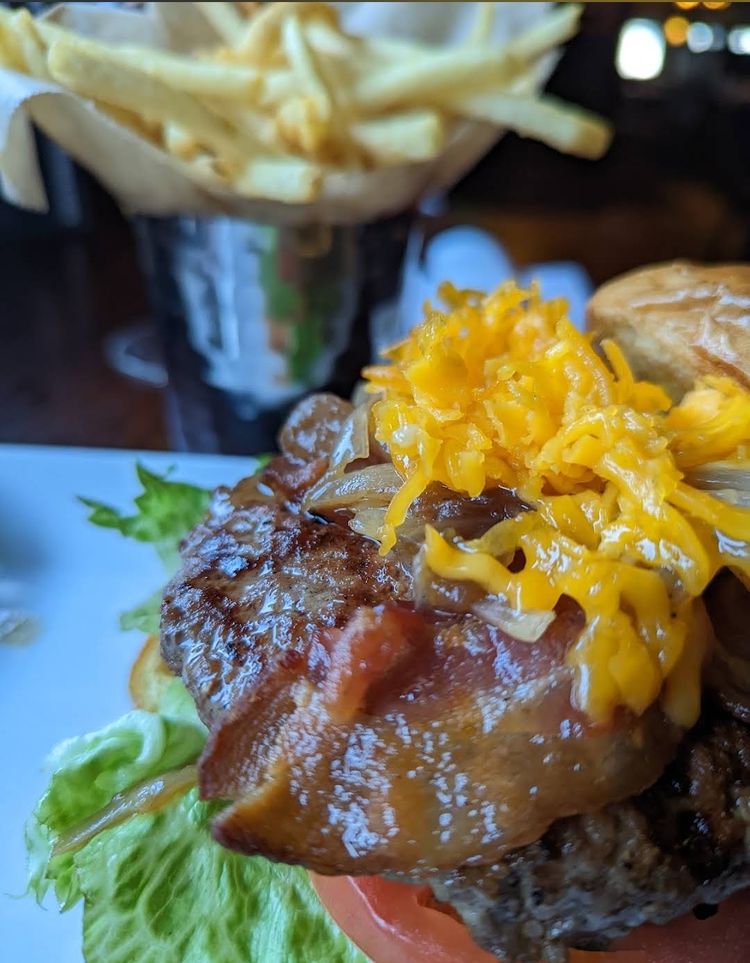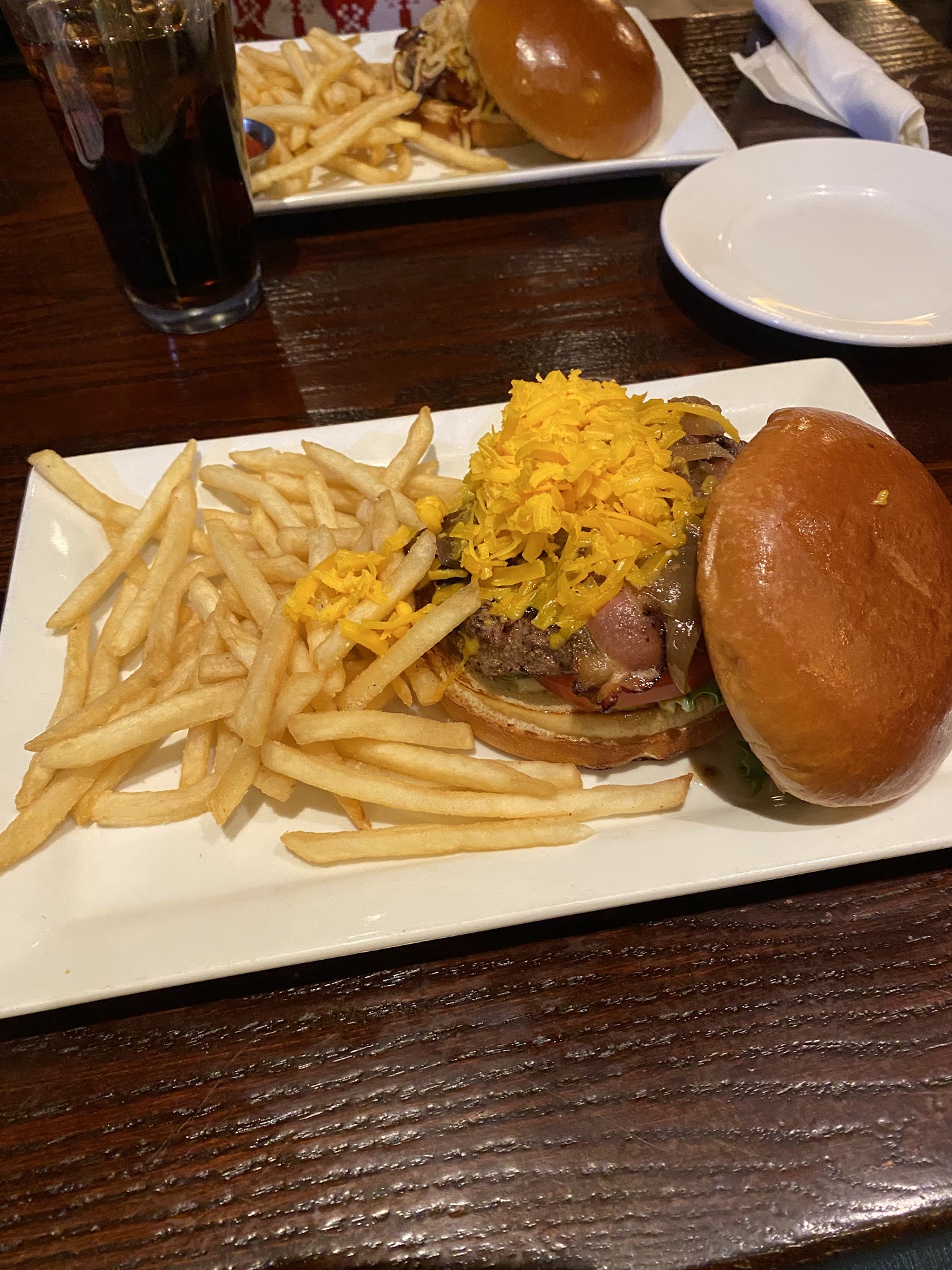 Food-wise, listen...it's mid-range pub style restaurant, don't expect the food to change your life...trust me, it won't. But from our past experiences and this latest one, I will say that the food is super consistent and super delicious. Besides the Tap Room Fries (which are a MUST), we ordered burgers...mainly because we were in a burger mood. I went with the Buffalo Chicken and she went with the Bison. Again, both were delicious. Best burger ever? No. Worth every penny and semi-memorable? Yes! We also ordered an app of the Calamari to go for our son, and I can verify that it was possibly one of the best Calamari's I've ever had at this type of restaurant.
