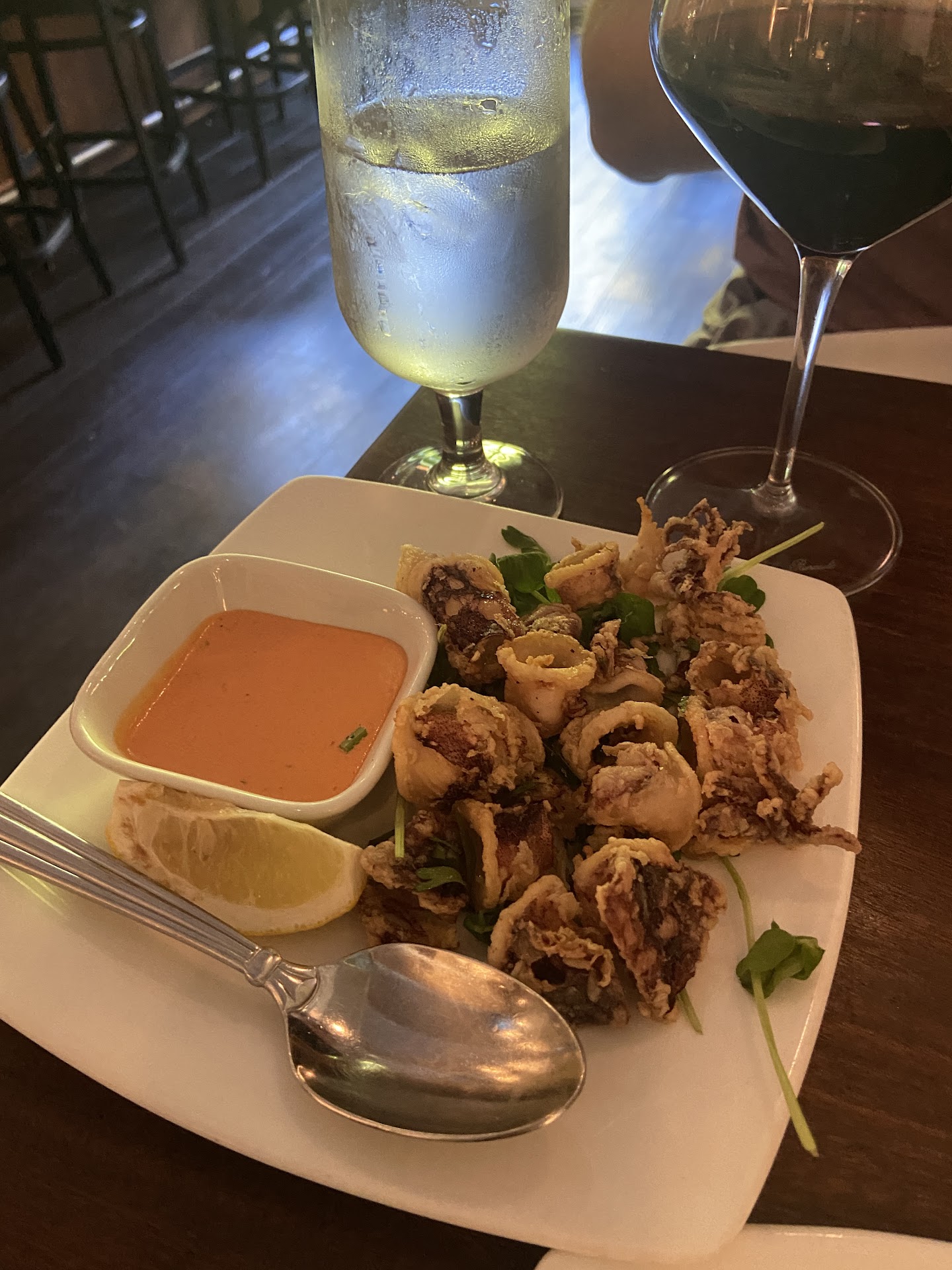 The food was delicious! The taste is worth the price. We had a couple of appetizers: calamari (love that it was not overly breaded), roasted cauliflower, and garlic bread! Now the garlic bread is something to talk about: not overly powerful garlic and cheese, served on a warm and pillow soft bread.