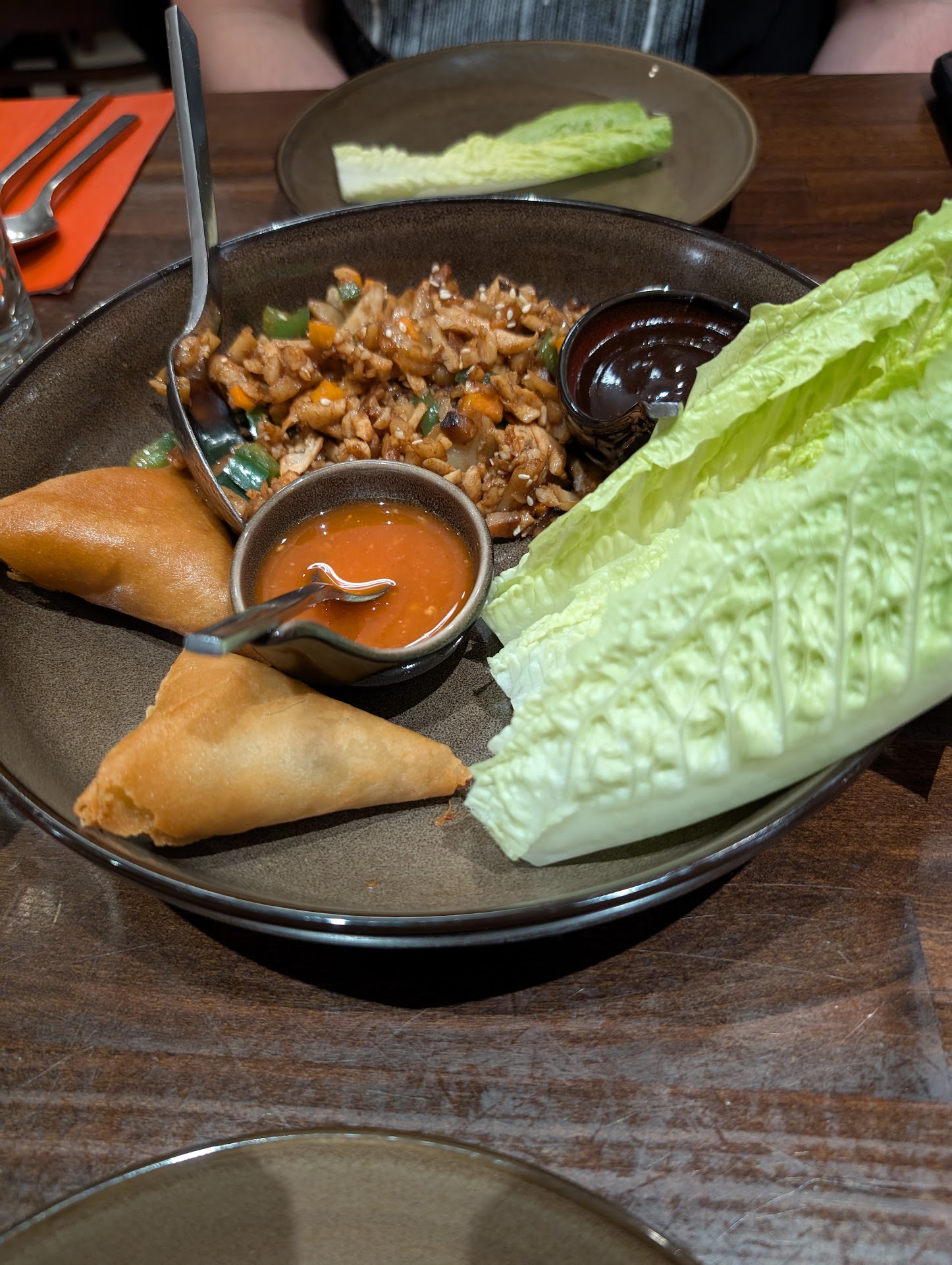 Our dinner at Burma 2 was oh so delicious! We started with samosas and chicken lettuce wraps. The sauces that came with the two dishes were great accompaniments however the dishes were great on their own. For salads, I had heard that their tea leaf salad was something of a specialty and it didn't disappoint. It has some common traits to an ordinary salad except kicked up a notch with nuts for a crunchy texture and the actual tea leaf itself provides a unique bitterness that I've never had in a salad before. My partner got the mango salad which he preferred because of the fresh, bright, sweetness of the salad.