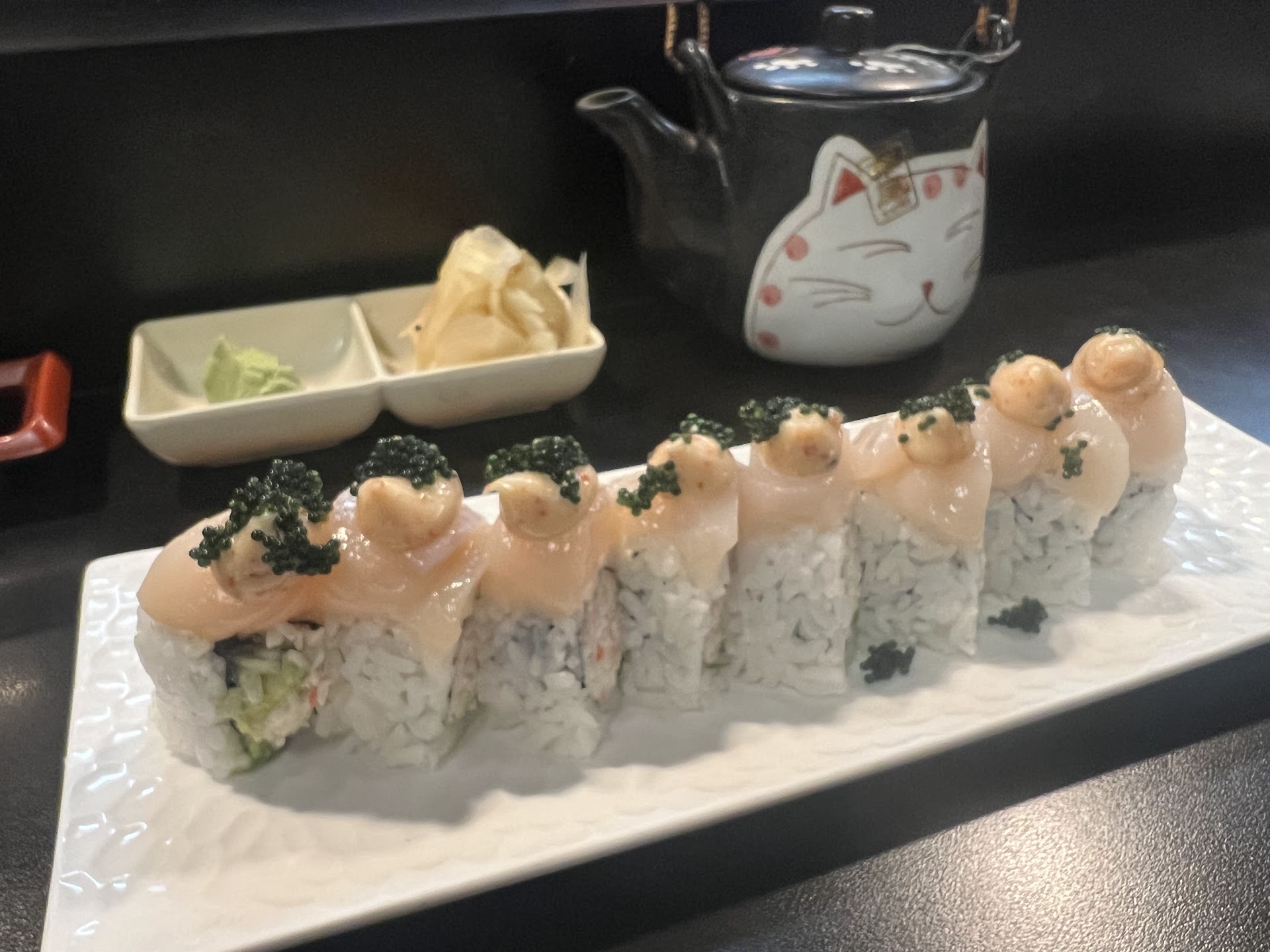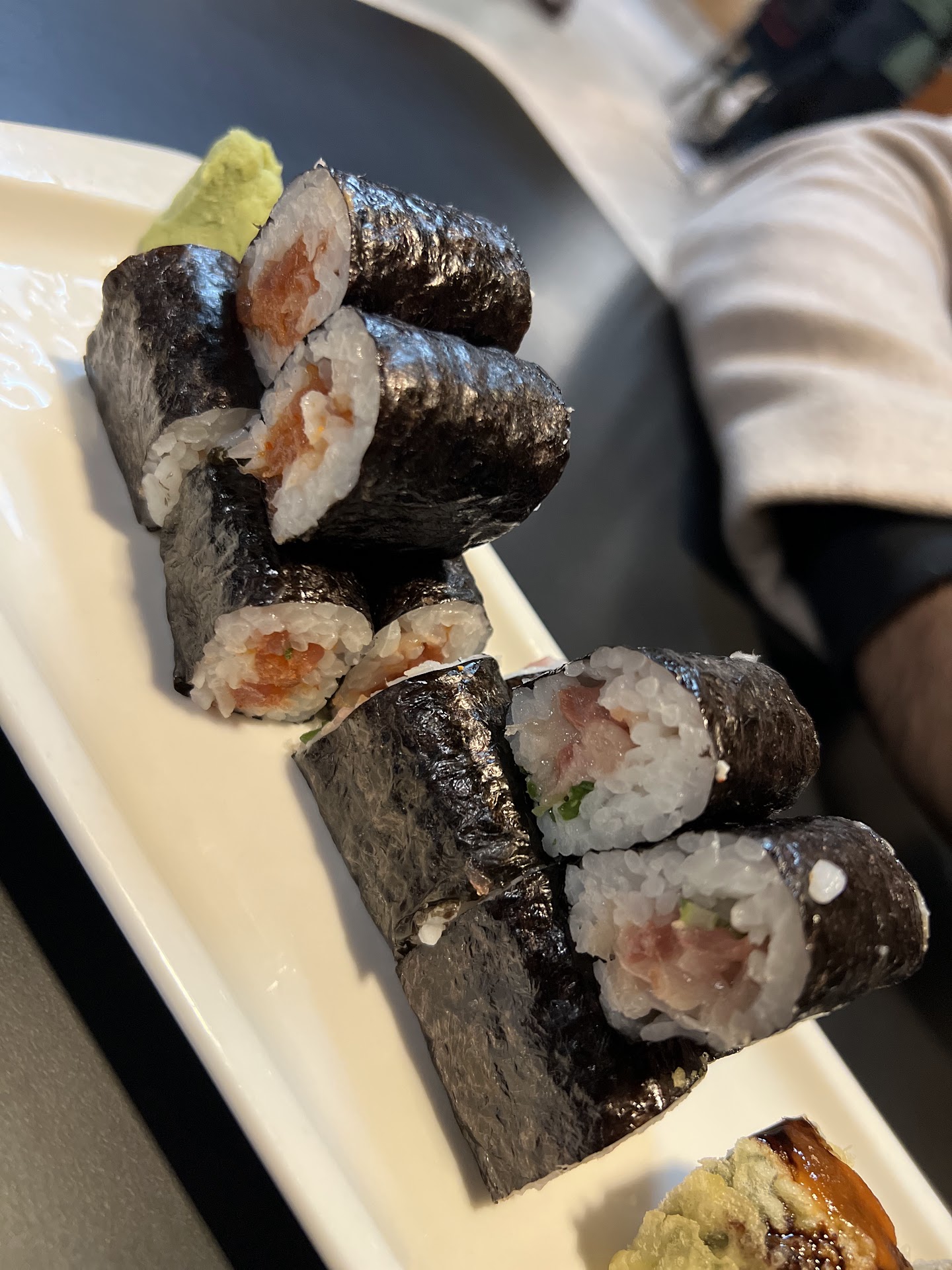 The Cherry Blossom Roll was another highlight, boasting a clean, fresh flavor and a stunning presentation that was almost too pretty to eat. We also enjoyed the Negihama Cut Roll (yellowtail and green onion) and the New Orleans Roll (spicy tuna cut roll)—both incredibly fresh and satisfying. The creative names for these simple yet perfectly executed rolls added a fun touch to the meal.