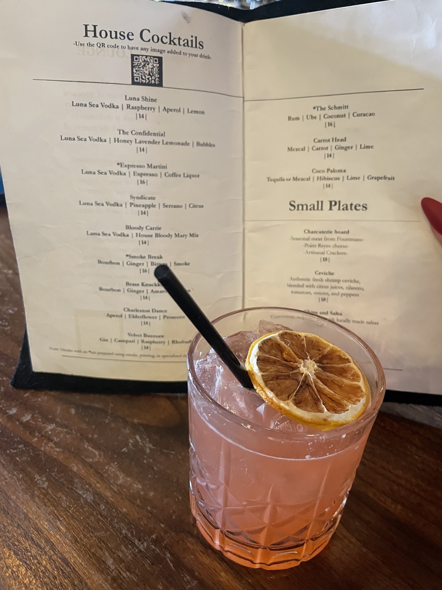 Read moreWe stumbled across Luna. It is underwhelming. All we wanted was just to have a drink and enjoy the company. The menu says we will ride the wave of sophistication. Well that's not really us, but they were open past 9 pm on a Sunday. Super small space trying to create some kind of vibe they just weren't pulling off. All we wanted was 3 glasses of wine and one cocktail. Took at least 1/2 hour and many prompts. The bartender could not remember what we ordered. We kept going back and confirming. Order still came out wrong. Finally got drinks. Really, how hard is it to pour wine! Took almost an hour to deliver chips and salsa. When we went to ask for a second drink " she didn't have the time, there were 6 drinks ahead of us" we closed out. Keep in mind this is a very small space and was only maybe 1/2 full. Uninspiring....