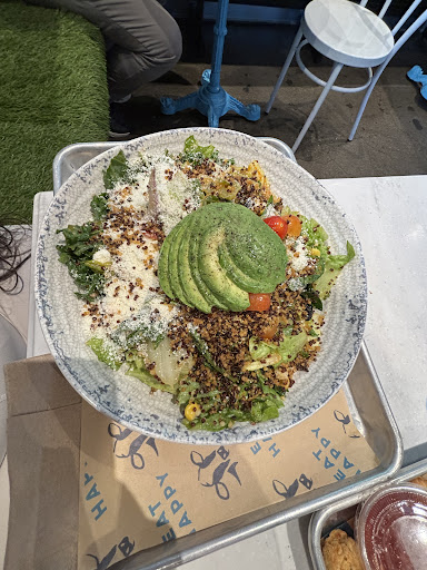 Read moreThis was the 2nd day they were open. They have a lot of staff helping. While waiting in line for 20 minutes, an employee welcomed me and asked if I had any questions about the menu. I told him what I was planning to order, and he suggested adding avacado to cool the spice. Good idea. I placed my order with another friendly employee who gave me a free cookie since I waited so long and tried to come yesterday, but the line was out the door. I found a table where I had to scan the table bar code and enter my receipt # so they know where to deliver my food. The seat was interesting. It was fake grass. Had some green juice (very good) and my chicken procutto panini sandwich and small macaroni salad. The place was noisy, and I think they were having an air conditioning issue as they had 2 portable units. Everyone was offering to help. I'll be back when it...