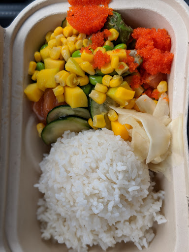 Located next door to a school of rock and in the same parking lot as a whole foods, getting parking was really easy. I actually parked right in front of the restaurant, which also gave me a great view into the school of rock. Kids. Practicing some song..I feel like I know it but I don't know the name. I couldn't actually hear it. Even when I went into the restaurant though they were right next door, I couldn't hear it. If I didn't have rehearsal that day, I probably would have stayed to eat my food but I got a poke bowl, spam musubi and a strawberry lemonade to go. Everything was absolutely delicious. The food is very fresh, the guy who took my order was very quick and also helped me a lot. Lot. I never been to this place before, and was honestly a bit starved as I hadn't eaten all day. I got a lot of things in my bowl and when I got to rehearsal to eat everything it was almost as if I hadn't left the restaurant. Everything...