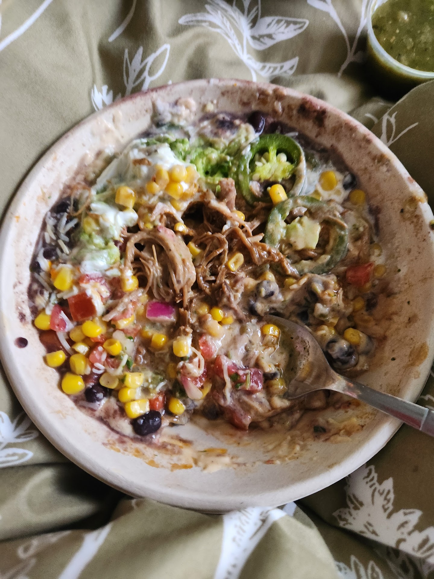I got all the other ingredients in my burrito: 3-Cheese Queso, Hand-Crafted Guacamole, New warm Mexican Street Corn with creamy elote sauce (not really warm), Pickled Red Onions, Fajita Veggies, Shredded Cheese, Sour Cream, Shredded Romaine Lettuce, Cilantro, Picante Ranch Dressing (Medium).