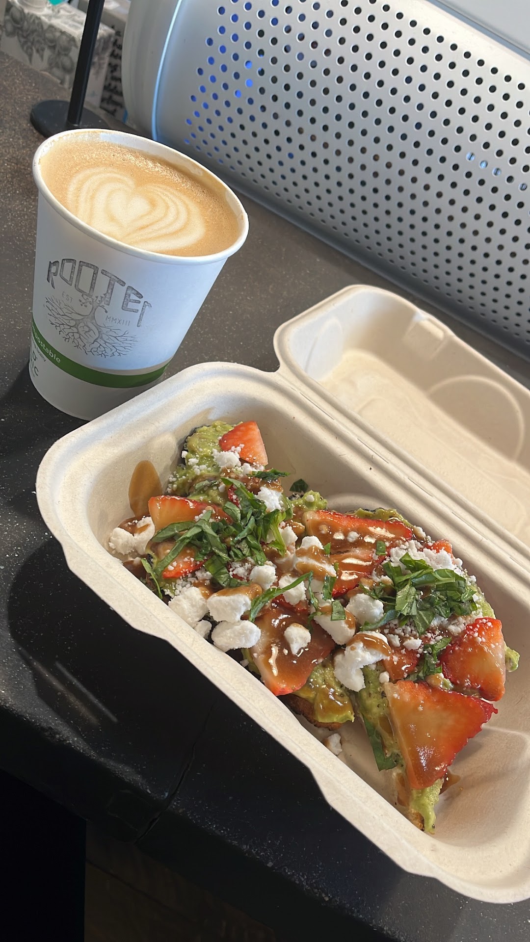 Read moreOutstanding vibe to this Walnut Creek watering hole. (also in Pleasant Hill) Coffee, beer, cocktails and limited food menu are all served in this simple-modern not-just-coffee shop. Rooted team was very upbeat, knowledgeable and energetic working as a team. Seating was nicely organized into bar seating, tables and outdoor - many politely marked with "no laptop" areas to prevent camping, allow sippers to perch and encourage chatting. We enjoyed a live DJ on our Sunday afternoon visit, which was excellent, but I understood from a regular the staff moves about similarly to recorded music in lieu. I learned Rooted Coffee is roasted locally in Vallejo and all milk offered is plant milk. Coffee flavors are sufficient to warrant a drive-by pick up without sit down (witnessed several). Beer selection, though limited, is also sufficient for getting together with friends. Did not learn enough to share about cocktails at 11:45a. Avocado toast looked very popular... Mostly, I imagine the motivation to visit should be a good cup of anything with great folks. Bring them, or...