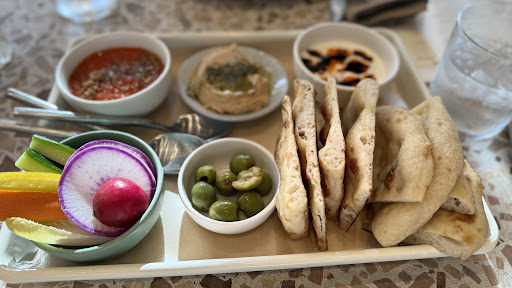 Read moreI don't eat out too much and when I do I enjoy supporting smaller vegan and vegetarian places. The occasion presented itself when my dad had a family visit day at his workplace in Walnut Creek, and during our visit there my mom and I decided to have lunch with him at a vegetarian/ vegan place. After quickly searching in happycow, I found Sepios vegetarian and Roasted vegan restaurants at or near downtown Walnut Creek with very different but excellent menus. I was in the mood for pizza and others in my family wanted soup. The varied Mediterranean dishes at Sipeos won my family and I over. We reserved a slot through Sepios' system but I came there earlier and parked at the nearby parking garage (free for 3 hours). Getting there early was not a problem as there was plenty of seating. The serving staff there, (I believe her name is Sophie, but my sincere apologies if I got it wrong), was super sweet and helped us out all throughout including explaining the options in a very understandable way. We all got the unique mango based gazpacho, which the serving lady explained would be spicy and sweet, and which we found super delicious. The small flatbread plate with dips and veggies also helped whet our appetite. The roasted red bell pepper based dip was especially flavorful and I would highly recommend. Then we got the vegan versions of cauliflower shawarma pizza, the eggplant honey pizza, and the cauliflower skewers with rice and harrisa side (which was spicy exactly as described). All of them were super tasty. The vegan version of pistachio cream cheese dessert was a delicious ending to our visit. There were other delicious options including soft serve which I had to shelve for a next visit. My compliments to the chef and his team there for the timely and wonderful preparation of the meals catering to vegan options. We also got a chance to meet one of the owners, Hetal, which was super nice. We had a nice conversation about his and his partner's core reason behind the Sepios name of the restaurant and he exemplified this by sharing the non alcoholic very low sugar or sugar free drinks collection he had in stock and allowing us to sample one of them, the Rosé. Thank you Sipeos (Hetal and team) for the great lunch experience. Best wishes for your business and I hope to come here in the future. Tip: you can use your toast account to earn reward points and redeem them for future visits. P.S. I added this review on yelp and...
