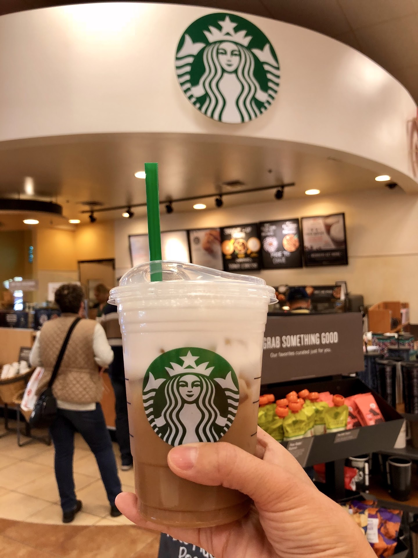 Serves the usual Starbucks' menu. But if you download the Target's Cartwheel app, every once in awhile there is a Cartwheel offer for discounted coffee, non-conforming beverages, and pastries which comes in handy after shopping at Target. Or if you register for Target's baby registry in their Welcome goodie bag, there is a buy 1, get one free beverage coupon, which is how we got Grande smoothies for 2 for the price of one on a hot...