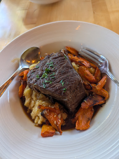 On the other hand, my husband ordered the beef stroganoff. And what we were expecting is that beautiful creamy white sauce with the great mouth feel. This was more brothy sauce. Would not order this at all again. It may have been an interpretation of beef stroganoff, but that's a classic comfort food and what we got was not what we...