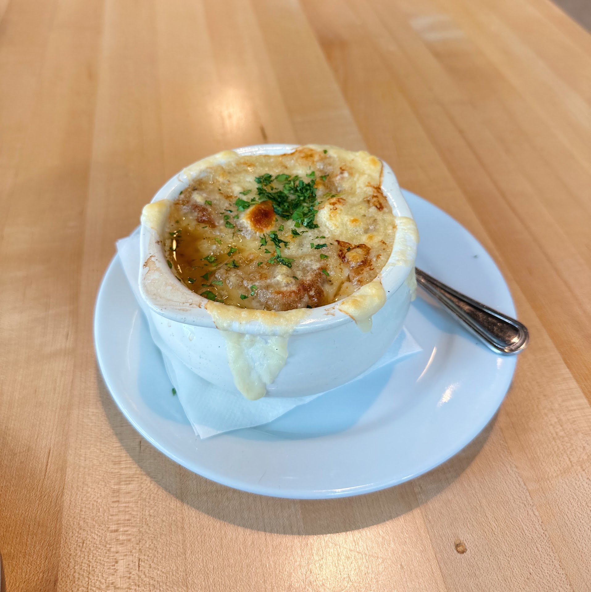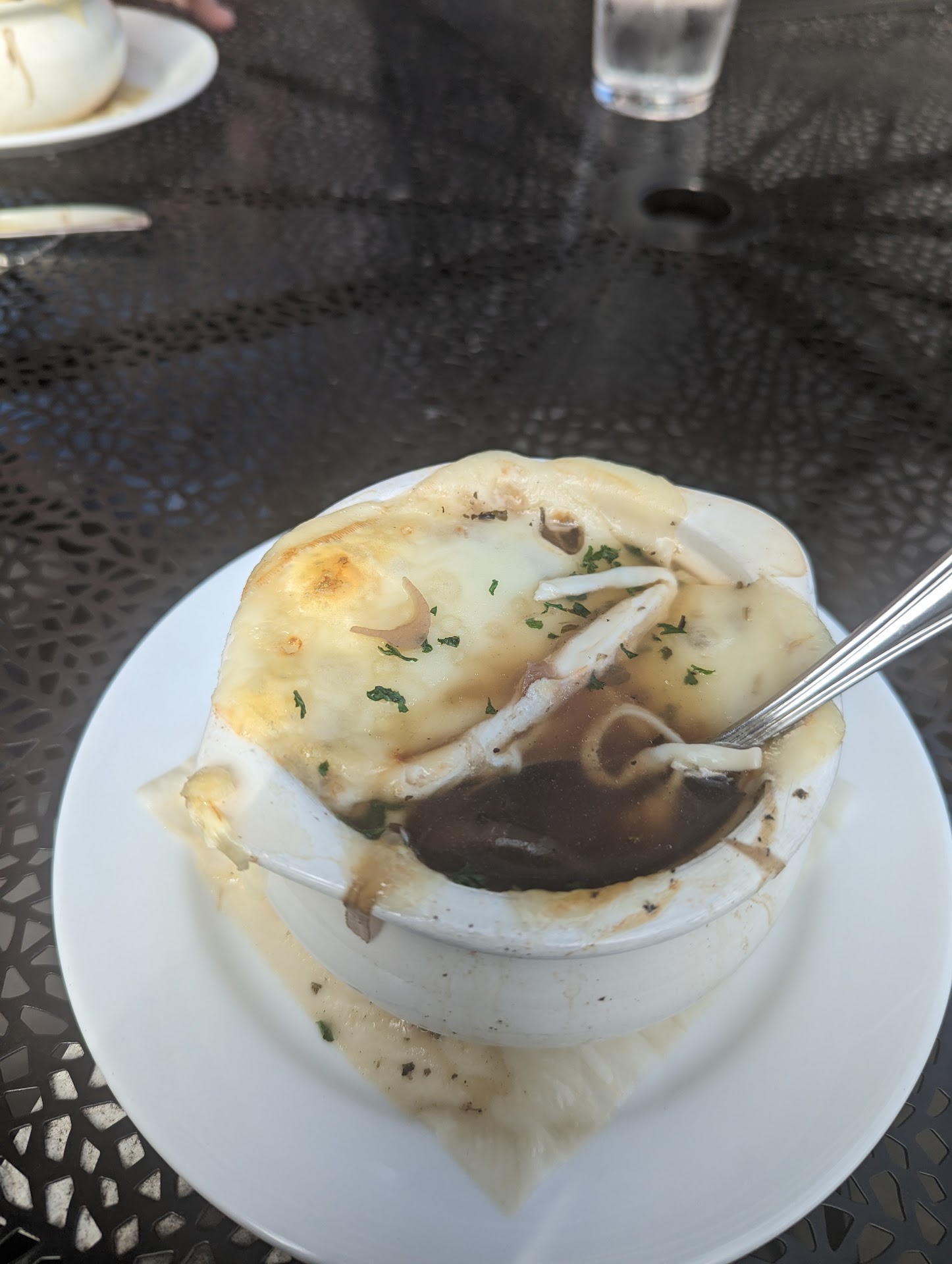 Read moreWe have been trying to get down here for a long time and finally managed to do it today. We had checked first to ensure that they had outdoor seating so our puppy would be well taken care of. Staff greeted us outside, got water for the dog. Made sure we had what we needed but we had failed to check to see when the regular menu would kick in. Brunch runs 10 to 1 on weekends and starting at 11:00 the regular menu kicks in. They were willing to prepare us French onion soup while we sat outside which was absolutely beyond delicious. Not iver cooked. Not over salted and then I had the filet black and blue salad and my husband had the grand mare sandwich. Everything was absolutely perfect and we couldn't have been happier. We will definitely be back and we definitely recommend...
