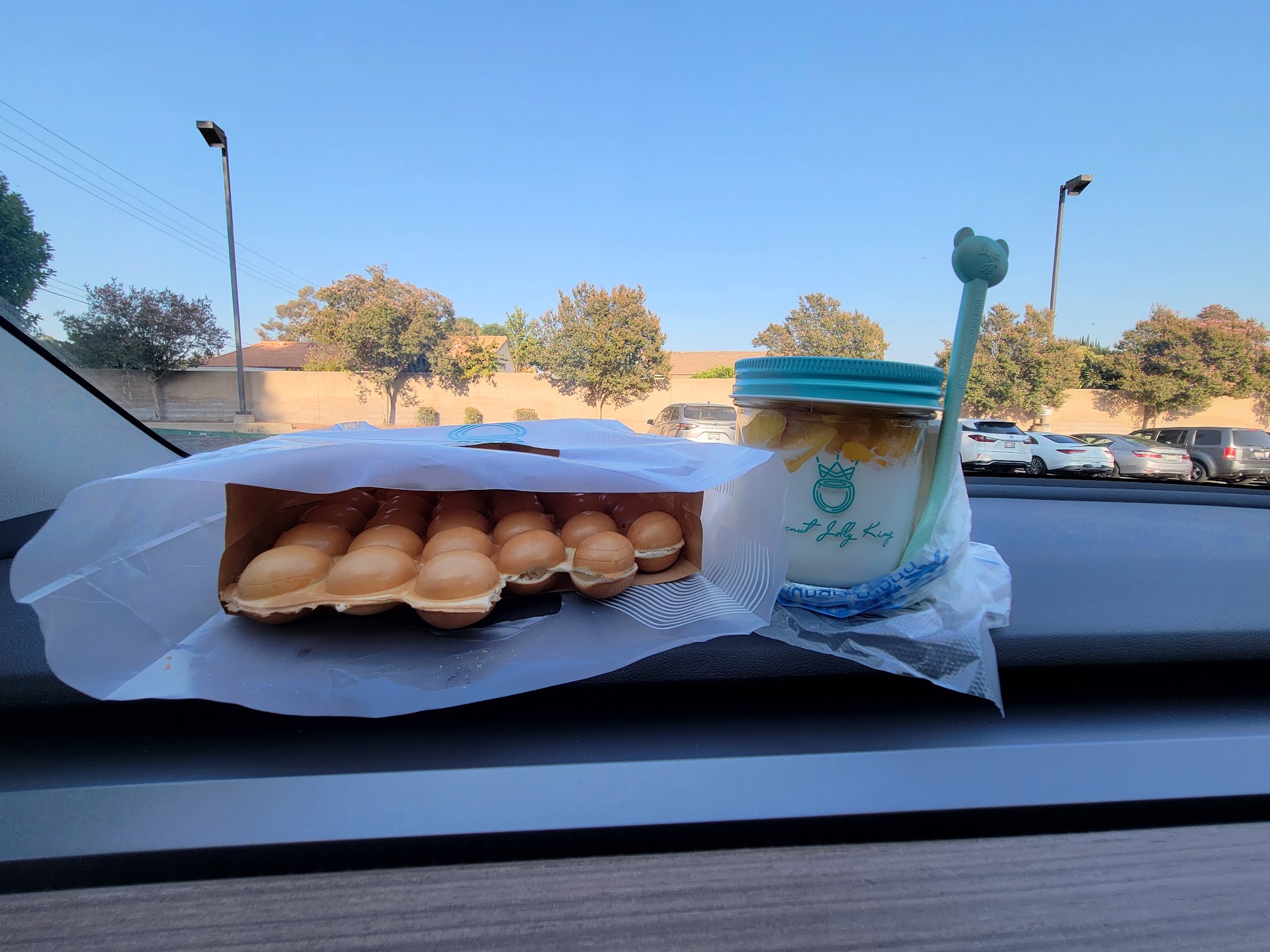 I'm surprised with the quality of the food and it is fairly priced. The egg waffle is not the best that I have, but it was only that's like the price of 15 years ago. The mango jelly comes in a glass jar, the coconut jelly is not very sweet, the mango it's very very naturally sweet. I think the citrusy mangoes works really well with the coconut jelly. I agree with some other review it might take a bit long, I order it on doordash and the pickup time got pushed back for like 6 minutes. I believe it was because the egg waffles were freshly made and it takes time for it to cool down to get crispy. The waffle and the jar of jelly only cost me less than $12. The jelly come with a cute spoon and I'm very happy that I found this place, it is right by Vons and I just sit there and charge my car while I'm enjoying...
