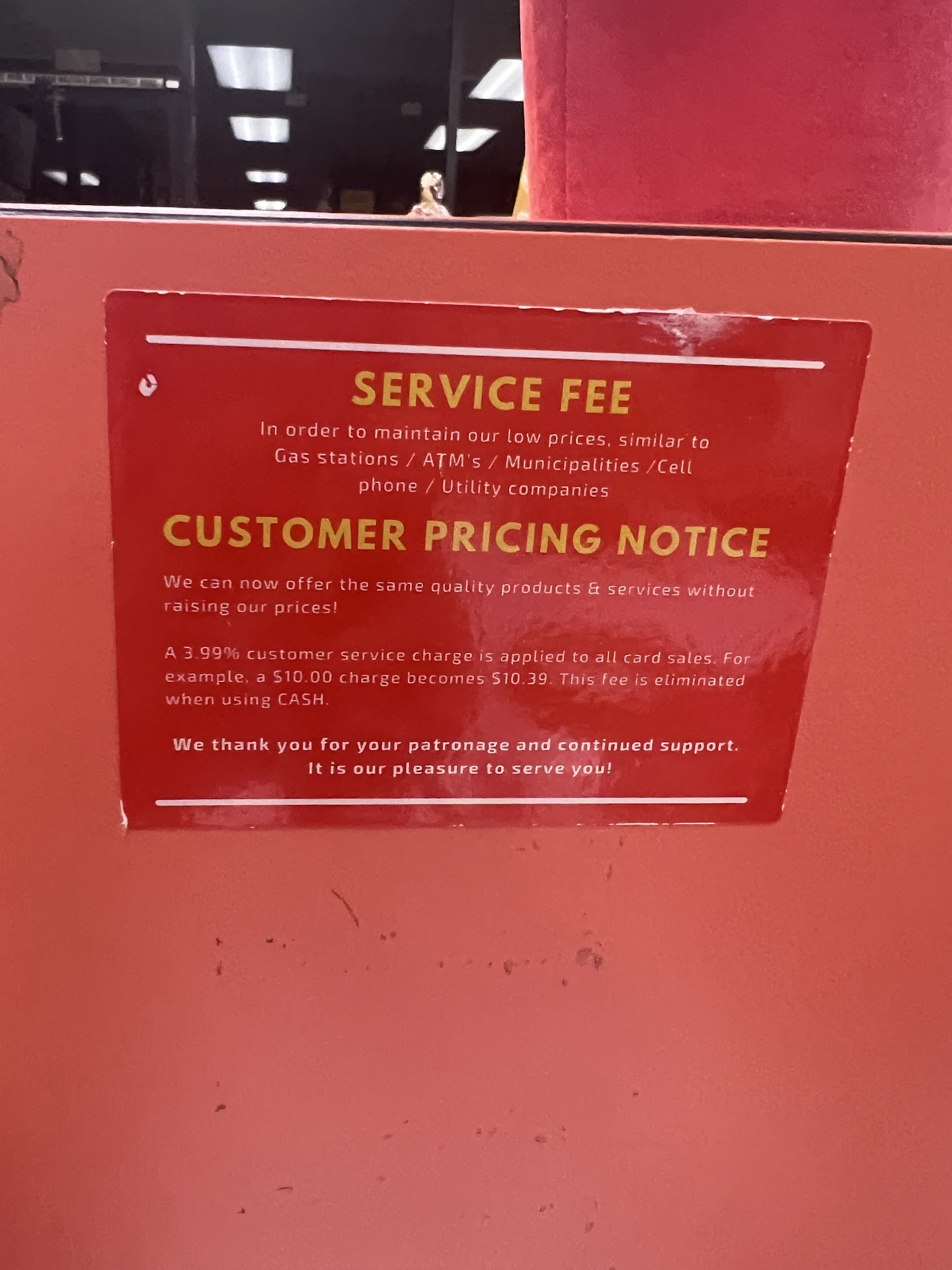 I asked why they're charging, he told me it's cuz the credit card machine charged customers. In my head I said yeah right, I see you put in the numbers for it to be charged that amount. I think they're just trying to avoid themselves having to pay the fee.