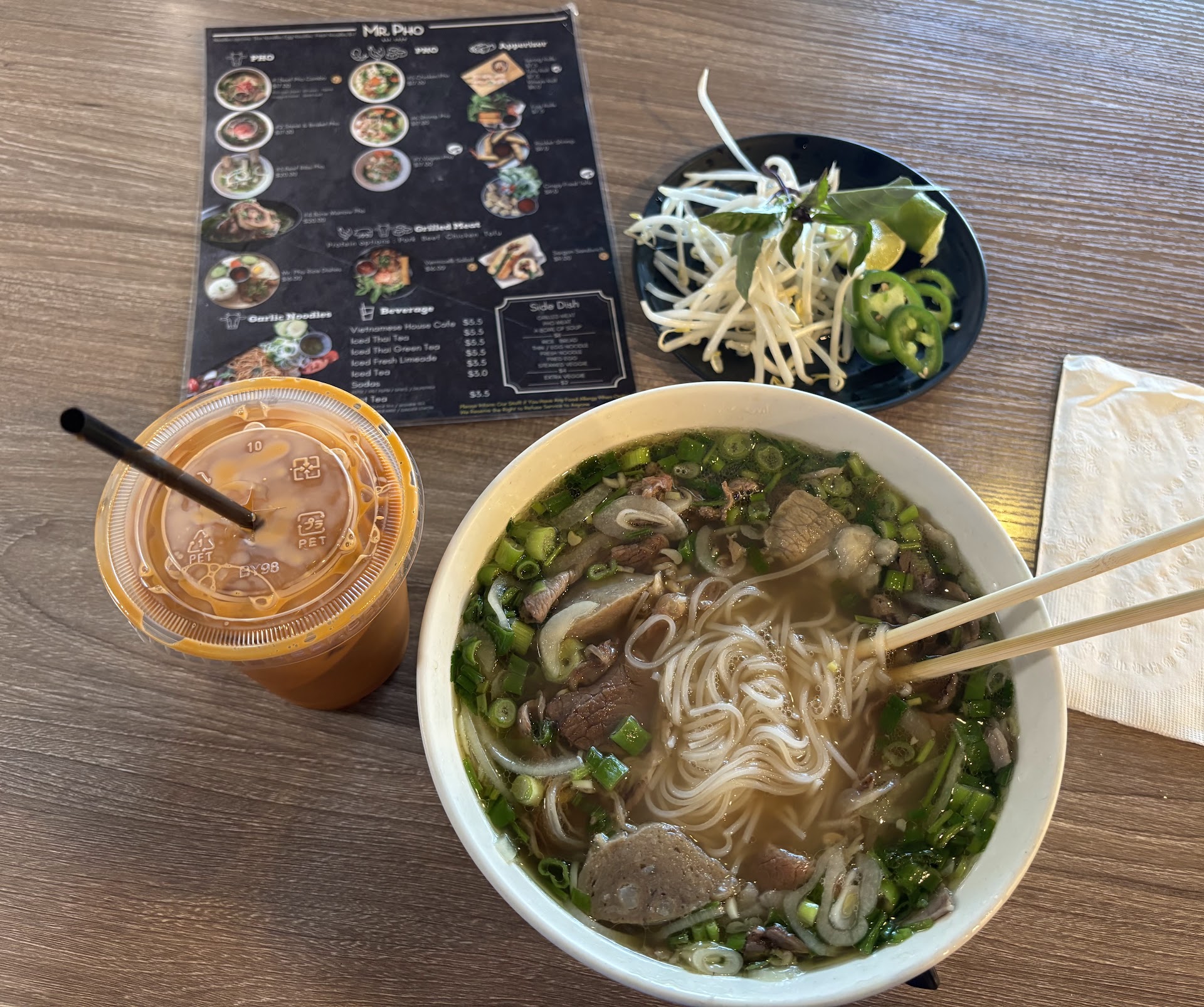 Read moreBest Vietnamese restaurant around the area! Love Pho here. They made the soup so savory and tasty. There’s so much meat in 1 bowl and the portion of everything else is big. The back ribs were cooked to soft but chewy, sweet and tangy. Not all Pho place makes good, authentic taste of broth. This place is 1 of the successor in that. The interior is not a standard Pho restaurant, but designed to stand out and luxury I have to say. Drinks menu is also great. They offer sugar cane juice, their thai tea is also amazing! The smell of strong green tea, mixed with the right amount of milk really brings out their handmade recipe. I want to try the eggrolls and garlic noodles shaken beef next visit. I hope they’re doing great so I can keep coming in for my favorite of...