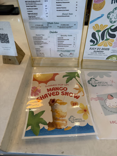 Read moreI recently visited Sweets By Aroma, the new dessert shop opened by Aroma Craft Coffee, and it was such a delightful experience. During their soft opening, I got to try a variety of treats: the ube tart, yuzu Jasmine Chiffon cake, coffee egg tart, cream brûlée egg tart, and sweet potato egg tart. Each one was incredible, made with high-quality ingredients that made them taste both delicious and wholesome. I also had their cold brew osmanthus oolong tea, which was refreshing and flavorful. If you’re looking for a cozy spot to enjoy sweets with friends, I highly recommend...