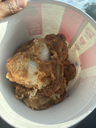 Read moreIt's pouring rain so KFC drive thru seemed to be the right choice. I roll my window down at the speaker and the drive thru attendant stated "the drive thru register isn't working so you'll have to come inside".I confirmed once again that the drive thru register wasn't working but all the other registers were working at the inside counter?.?. She replied that I was correct, I would have to come inside to order. I pull around next to the drive thru window, which was covered from the rain, and observed the drive thru attendant wearing a Bluetooth headseat, walking around behind the counter. I don't know why she refused to take my order when her headset clearly reached the other registers. I was lucky to find a parking spot by the front door and joined the other disgruntled customers who were also wet. I placed my order and didn't ask or say anything any further with the workers. The man in front of me had ordered an 8 piece chicken bucket and a sweet tea. One of the workers announced his 8 piece was ready and set it in front of him without saying a word. He stood there several more minutes and said, excuse me, I didn't receive my iced tea. A worker set an empty cup in front of him and walked away. He said, "I guess I have to make my own tea after standing here all this time soaking wet". He went around the corner to get his tea but the dispenser was empty and set his cup on the counter. The drive thru lady had already made him a tea and set it on the counter. The other lady slid the empty cup by his full cup of tea and said, "You can throw the empty cup away". He ignored her while grabbing his tea and leaving. She then said, " I told him to throw the cup away"! I just stood there in disbelief of what I had experienced. Next time I'll go next...