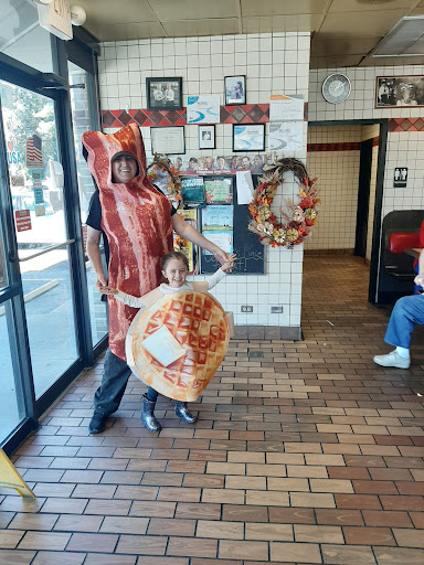 Read moreHahahaha! What can I say? For starters, the waiter chomping on his gum was very unattractive to say the least. After taking our order, the waiter had to go to the back to get the Cook which then came out of the back staring at her phone and pulling earbuds out of her ears. The waiter himself, couldn't put his phone down long enough to get our order correct or prepare it correctly, the few things he did have to prepare. With our orders, we ordered 2 pecan waffles. The one waffle he made had no pecans. The other waitress had to come over and make our two pecan waffles with pecans this time. Our waiter comes back over when the waffles are ready, plates them, and then hands them to us. Runs away quickly to go back to his cell phone. As he comes back by, we had to ask for butter and then on another trip through, we had to ask for syrup. Almost done with our food, he brings us a plain waffle. We told him we only ordered two pecan waffles. He tells my husband that waffle comes with his meal. Well, kinda late there buddy. We had to ask for that to go. Getting ready to leave, he runs back by us to bring us our check. While asking if we needed anything else, he had to pull his earbuds out of his ears to hear us answer him. What a joke! Since when did cell phones become a part of the waffle House uniform? Very unprofessional. As a little more food for thought.... I hope he isn't the "take your cell phone to the bathroom" kind of person seems he set his phone down all over the place including the bar where they prepare your...