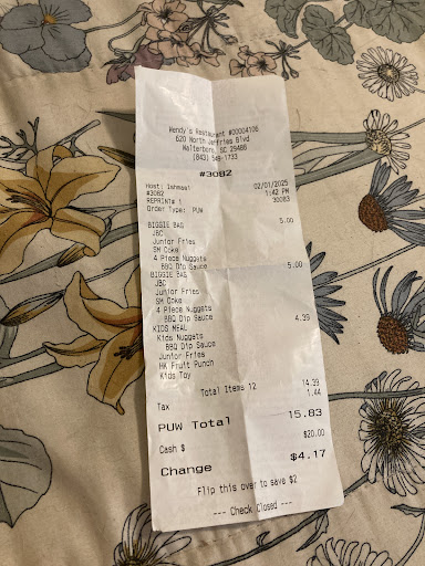 While waiting one customer came inside after he said he waited 10 mins in outside line…he didn’t get much further inside. I watched at least 6 different families get in line in the store and leave when no one was taking orders or rarely taking orders. I placed my order online when I walked in and the line was backed up. It took 27 minutes for Two of the 4 for 4 Jr cheeseburger combos plus 1 other combo without changes. One Junior cheeseburger had a no ketchup request. Thank goodness I checked it before leaving the counter because my daughter would have had a burger she wouldn’t be able to eat. The one working the counter questioned me about it when I told her it had been requested no ketchup. She questioned it and asked for receipt. When I showed her the receipt she huffed as she took the burger. I was patient and never fussing about it; just told her this one was supposed to be no ketchup. Wished we would have done the Mexican sit down dinner that took us 35 minutes on the last trip vs the 27 minutes at Wendy’s for truly...