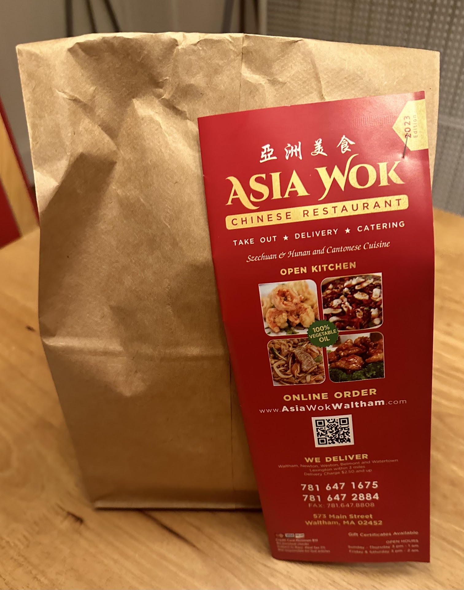 It's probably hunger hitting hard and the sugar dipping too low that I finally just ordered away. Food came out really fast (note number of staff in kitchen; plus, it's a Chinese kitchen...with that number of staff), packed nicely and got me back on the road home. I didn't think twice as I ripped into the bag seeking hunger reprieve.