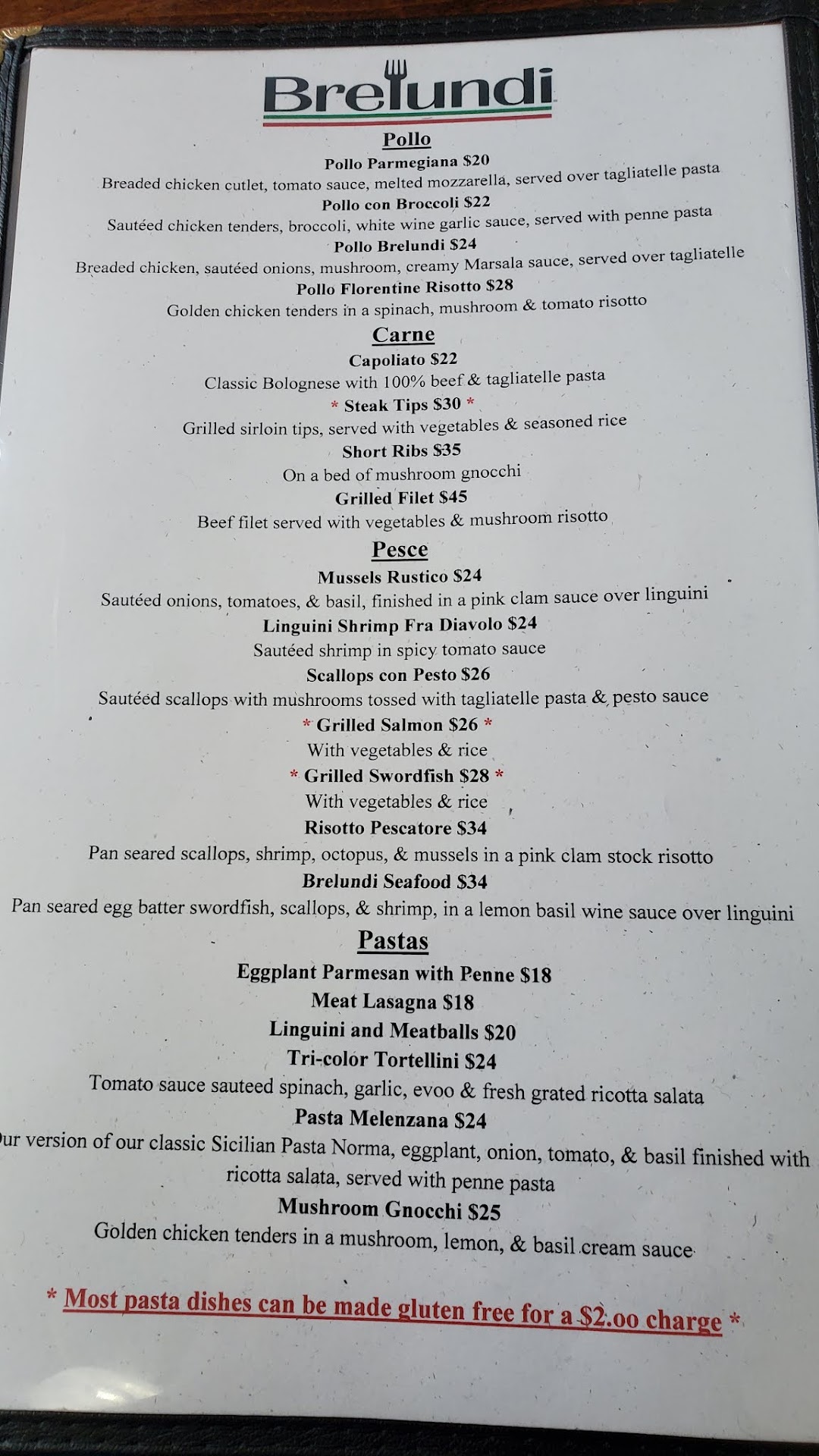 The front of the house service is very attentive, warm, and polite here, which is refreshing. Brelundi restaurant is a full service restaurant serving breakfast, lunch and dinner. They offer both alcoholic and non-alcoholic beverages such as wine, and imported sparkling mineral water. They will offer you bread. They are making house cured mortadella, etc, which really impressed me. I enjoyed their eggplant Caponata on their anti-pasti plate, whose sauce is sweet with golden raisins, and their buttery proscuitto. The eggplant is cubed and braised in the marinara sauce as is traditional. They served kalamata and large green ( Spanish ? Pitted olives with the Antipasto. They served the Antipasto with fried chick pea flat bread whose name eludes me - Crespelle ? It has a nice, nutty flavor though was a teeny bit greasy.