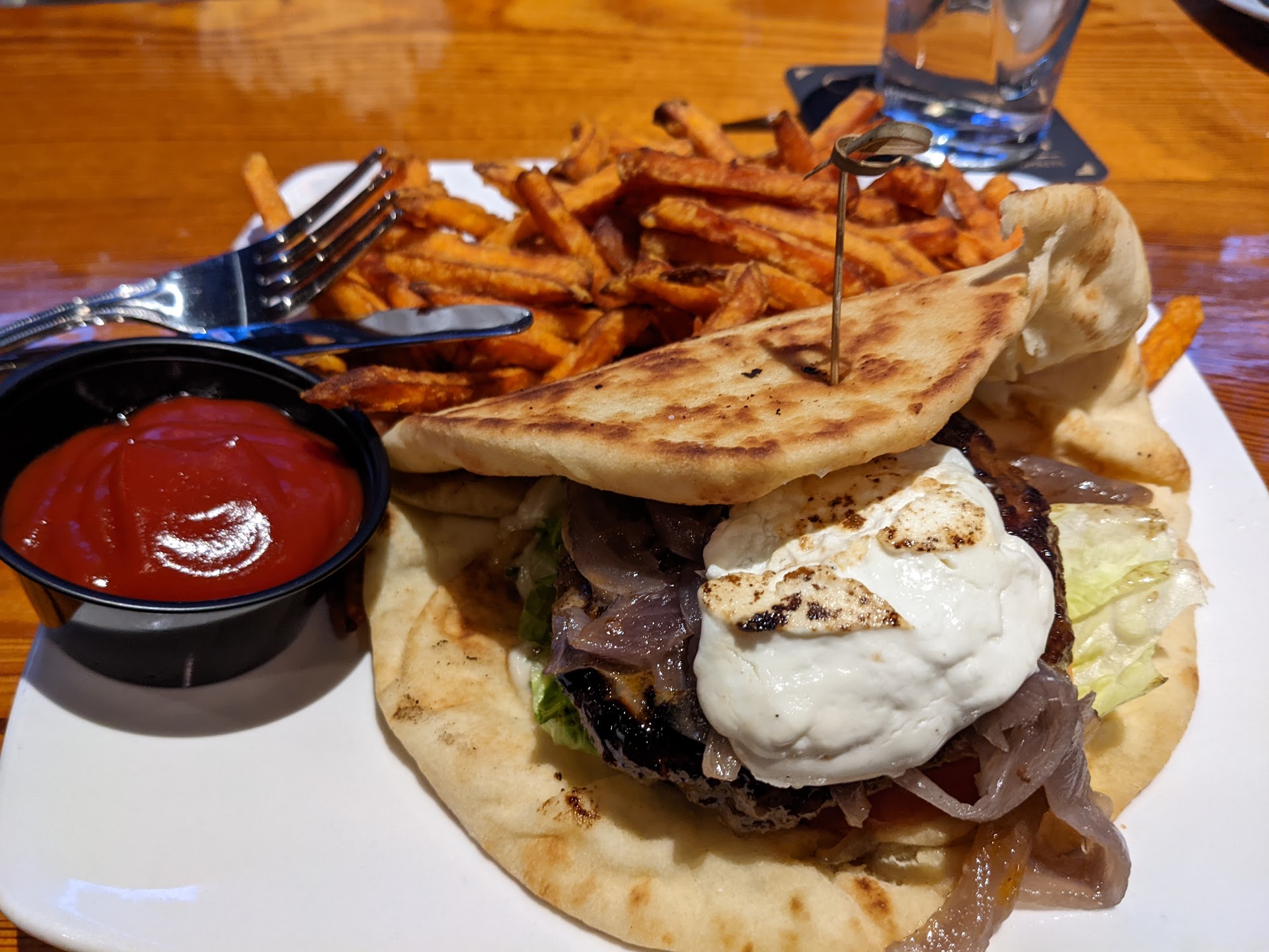 Read moreAfter a very historical day in Concord, I decided to try this Restraunt in my hotel (The Best Western Plus). I came through the hotel entrance off the lobby. Large menu boards hang outside the dividing door. I entered and read signage saying you need to go to the host station. I had to navigate myself to the host station in the front by passing seating and a crowded bar. The hostess said the bar was open and sat myself. So, I found myself a high back chair to sit. I noticed most patrons were not guests at the hotel! The bar back gave me a drink menu, a regular menu, and distinct drink menu was already at my seat. I opted for a build you own non alcohol drink. My base was an ice-tea with black cherry flavoring ($6 and comes with "one refill"). The drink had a toooooonnn of ice. Essentially you are buying 2 drinks as $3.00 seems to be the price at other locations. My drink was bought and I ordered a cup of clam chowder. I waited about 20 minutes before it was brought out. It was not overly warm (the soup must have been sitting because a little film was forming). The cuppa was an A- average. The bacon took away from the subtle sweetness of a clam in a chowder. The broth creamy and typical of a NE style. There was carrot and celery and do not remember the taste of potato. It was served with proper oyster crackers. ($6) Next I ordered a refill on my drink (Peach Ice Tea. Then I selected an entree. It was a deluxe grilled cheese. Beautiful grilled thick cut bread had sandwiched between brie and American with spinach and fig jam (very very little jam). The sandwich was really good (A). The fries were average unseasoned (A-). The bar tender was very attentive and friendly. Was just talkative enough. This place was an surprise Restraunt in a hotel. My bill came to $32 and I added $10 tip because the whole experience...