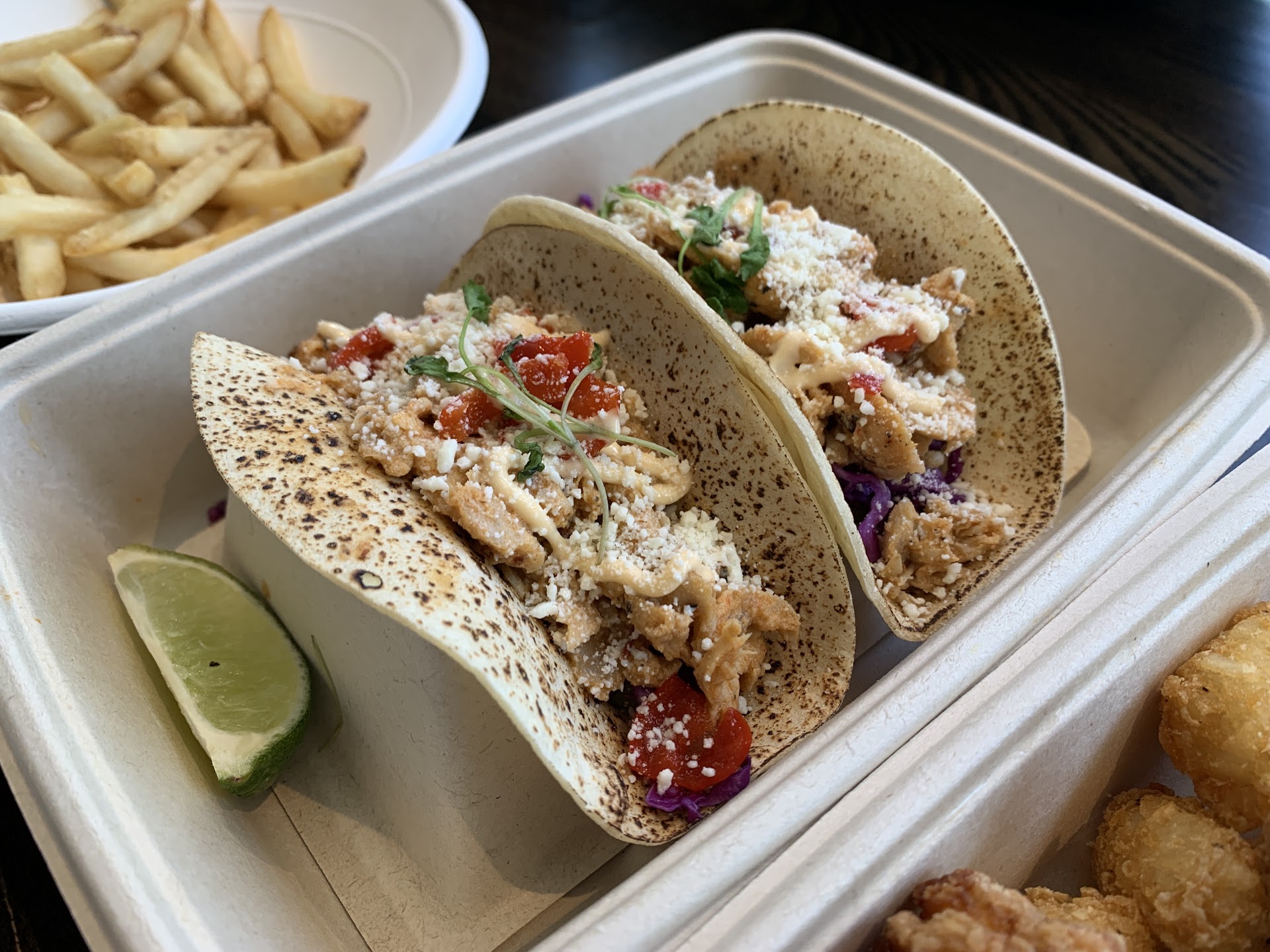 I have very high standards for food and this place meets them every time! I LOVE the shrimp tacos, and every pizza I've ever had is amazing. Super fast, not 'cheap' but reasonably priced for what it is IMO. Solid, fresh ingredients. Very friendly staff! I Work in the building and come here for a little something special when I...
