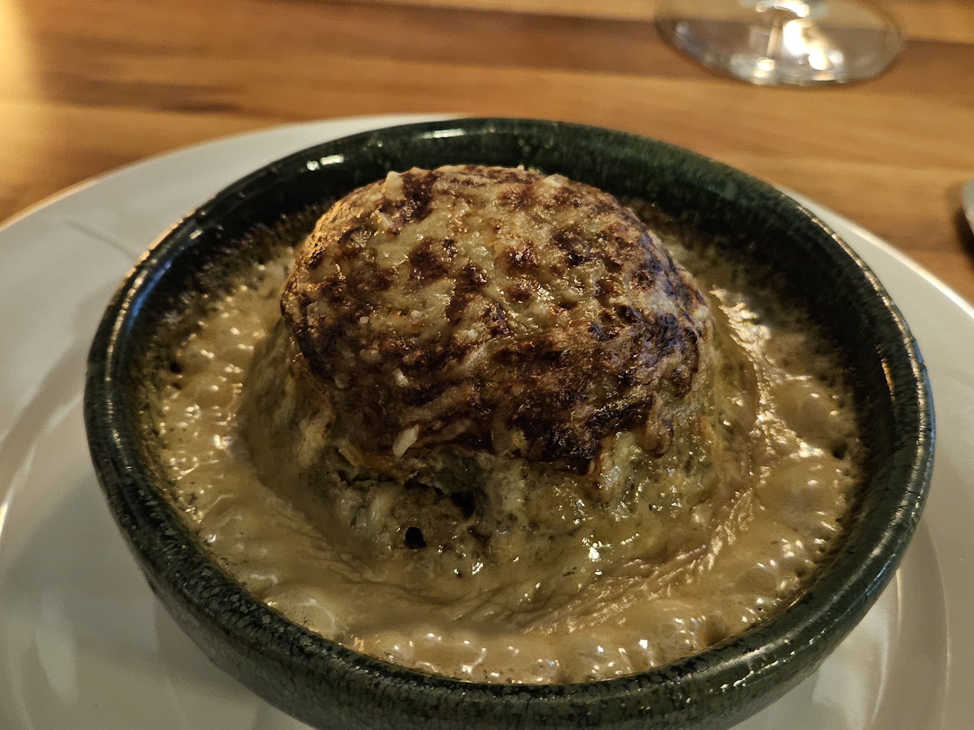 Potato Parmigiano Gnocchi Bolognese was plated with slightly more care so presentation was good. The Gnocchi was a bit larger than would be traditional so it wasn’t cooked even throughout but still not bad. The bolognese was a decent flavor, but again, it didn’t taste freshly made. This dish would pass at any locally eatery, but not at a mid to upper level restaurant.